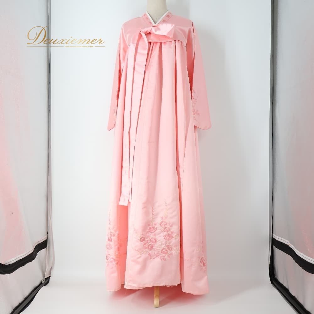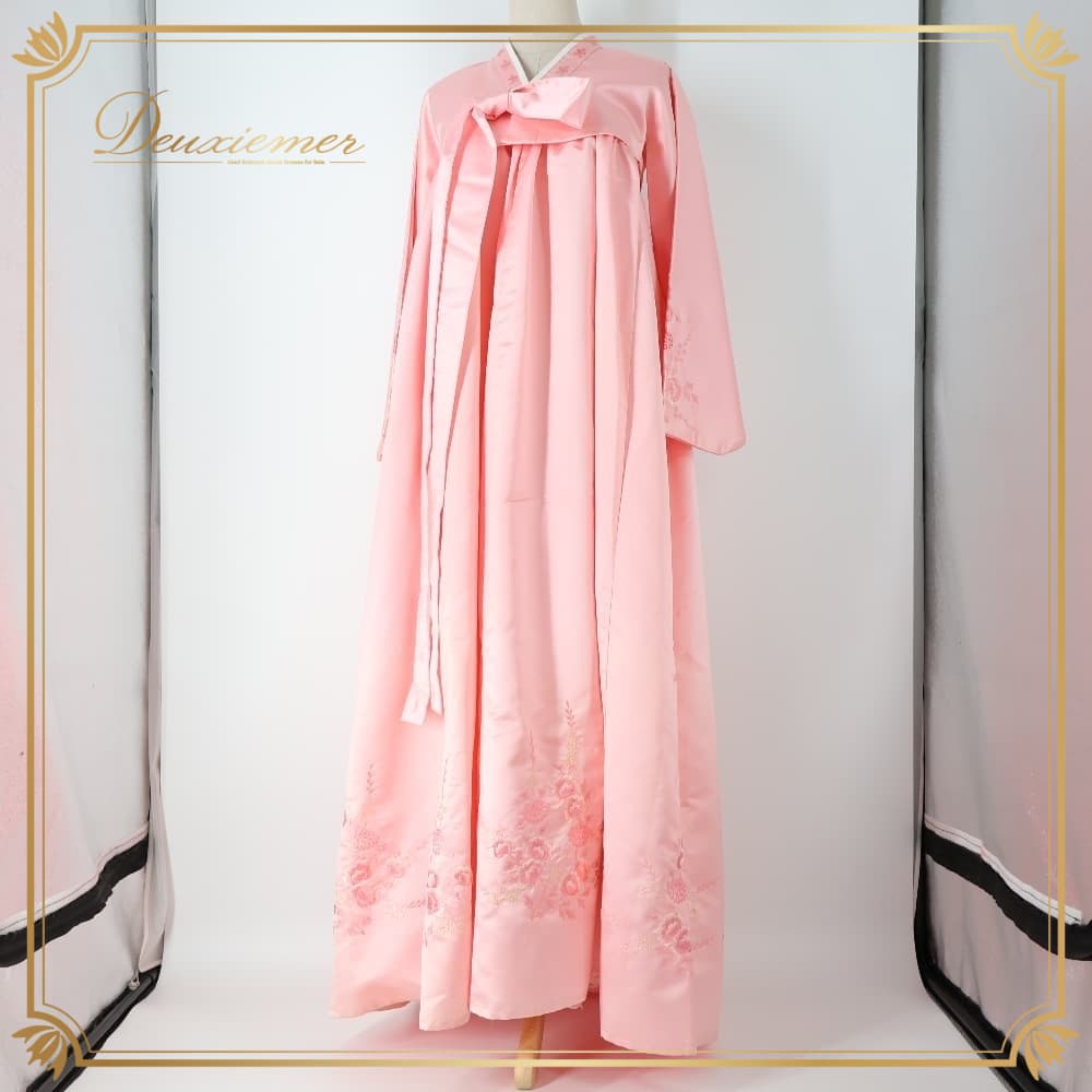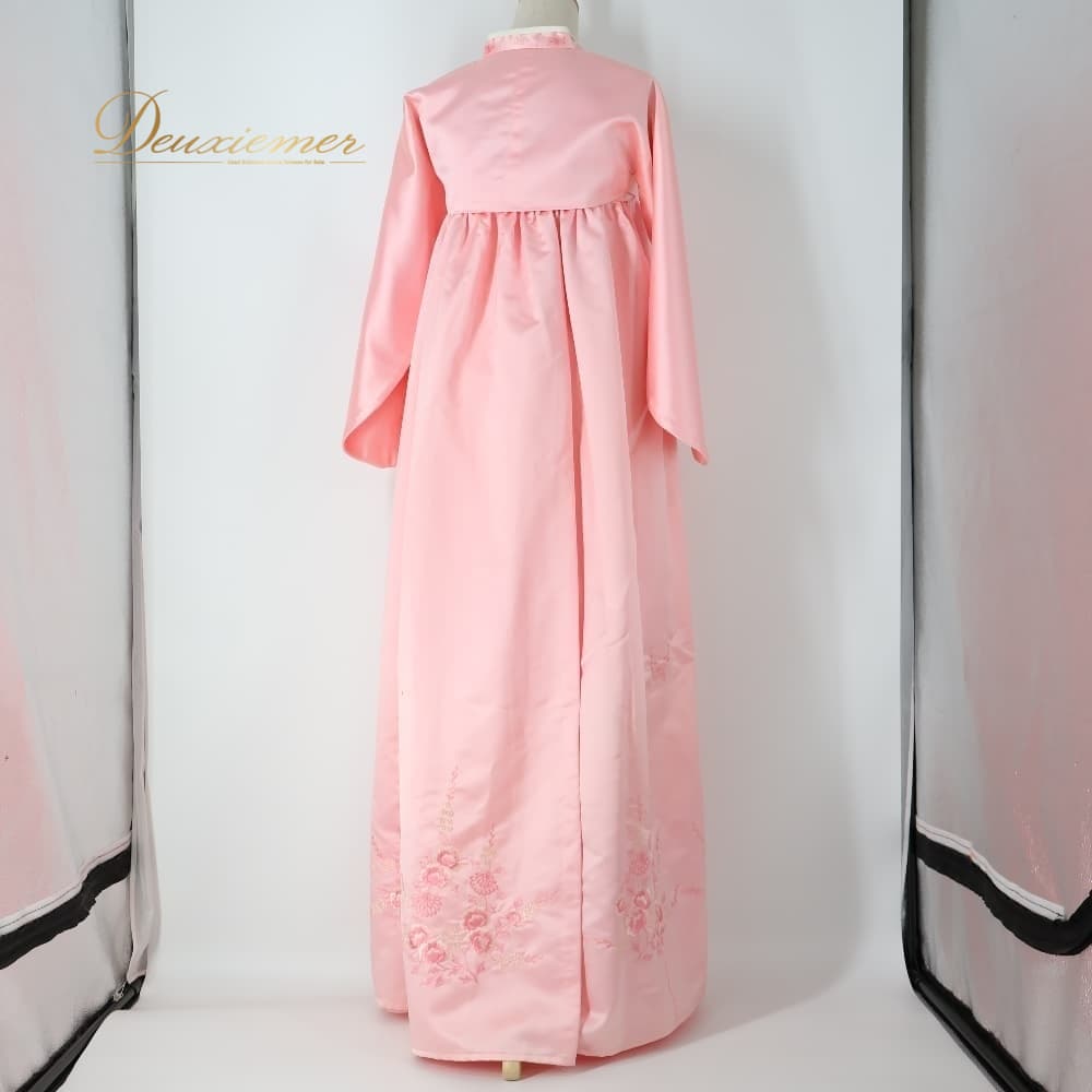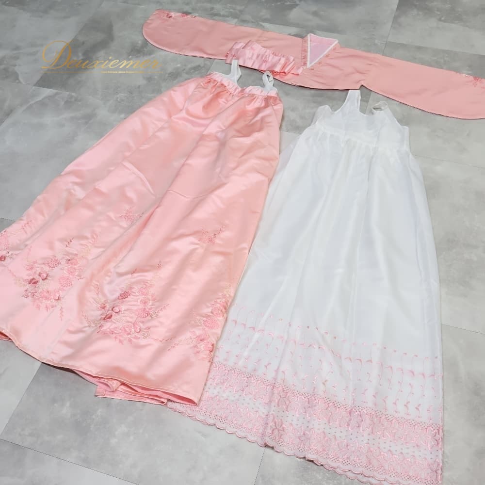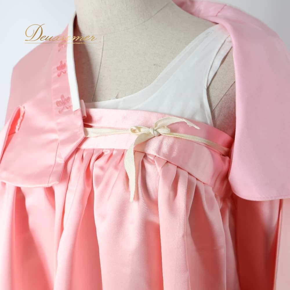 韓国伝統衣装 チマチョゴリ ピンク系 明るい トップス ワンピース ドレス インナー 花 花柄 刺繍 チマ チョゴリ 白 民族衣装 還流 韓服 イベント コスプレ 仮装 舞台 ステージ かわいい 華やか 光沢 ダンス ホワイト系