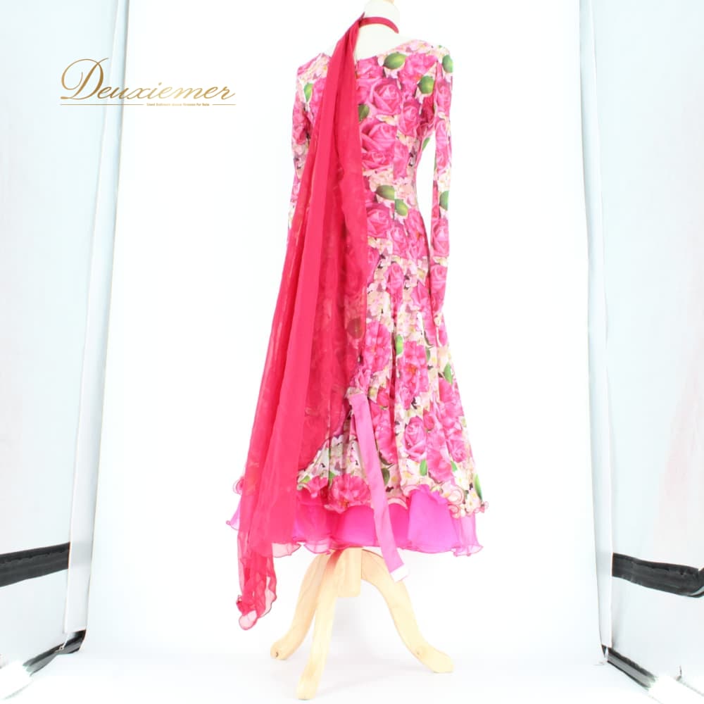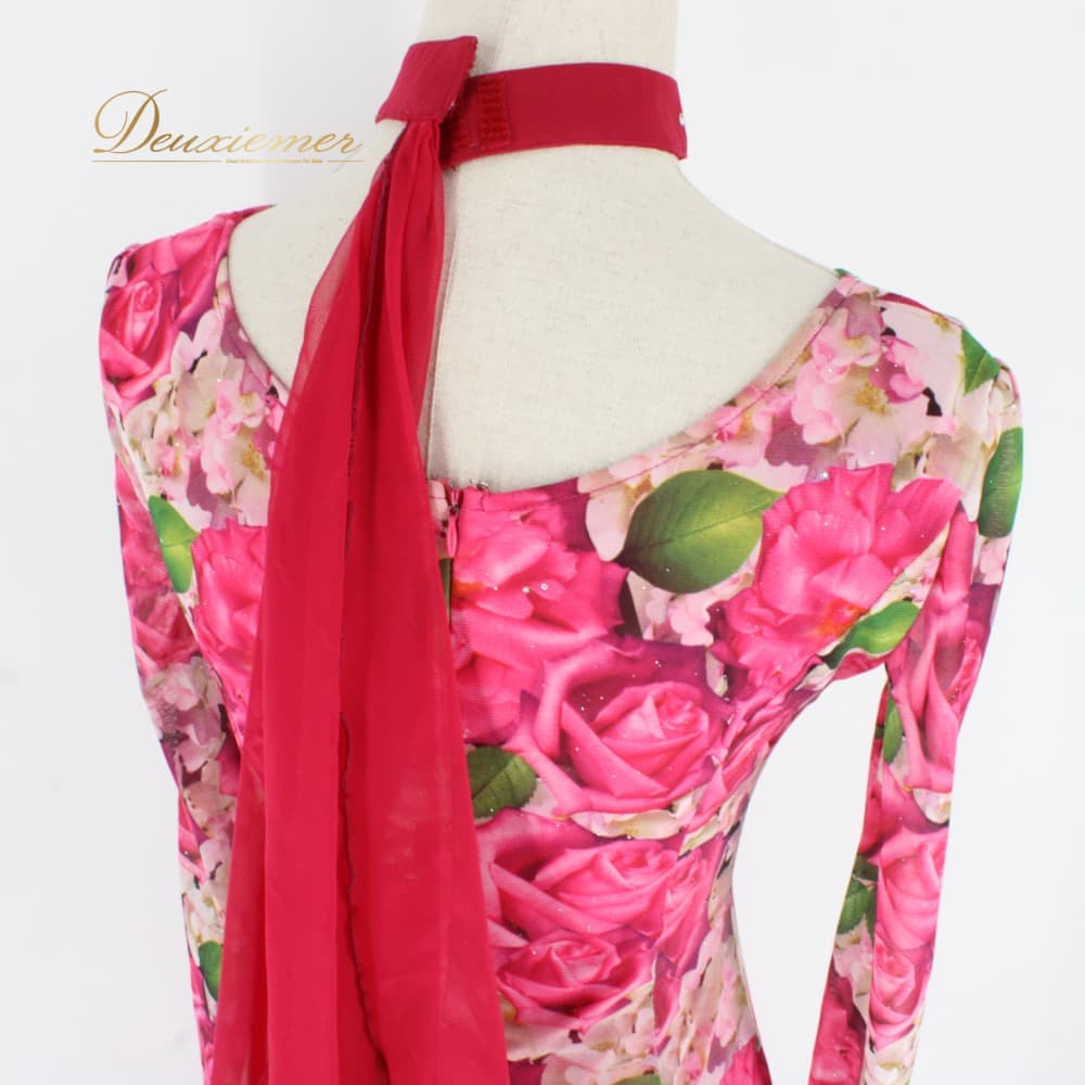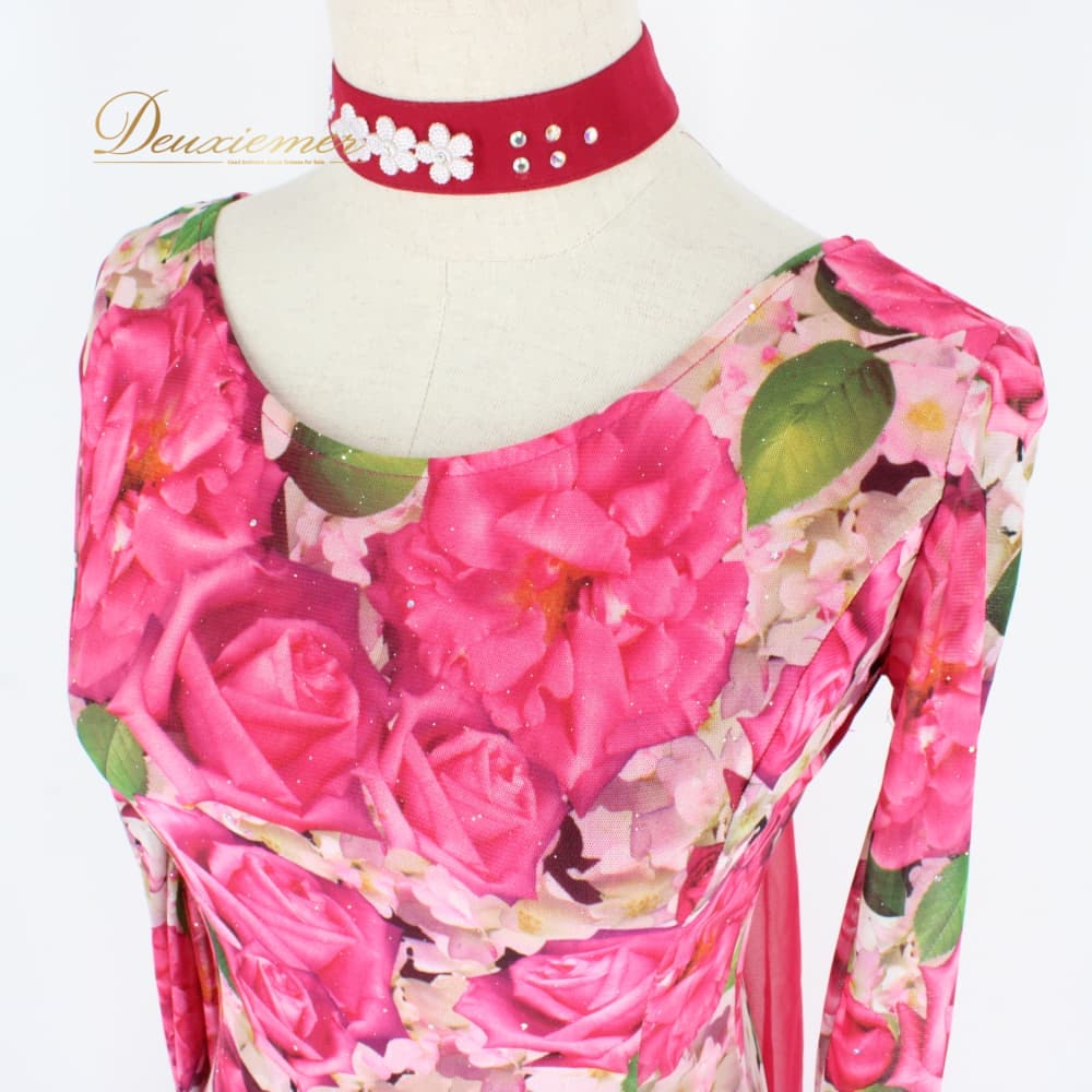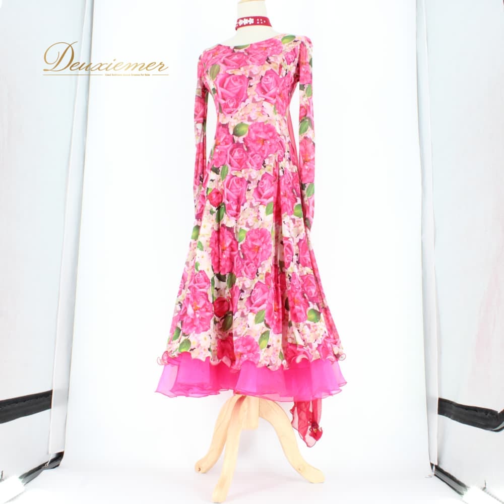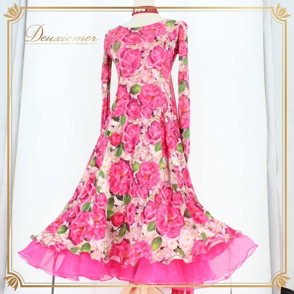 社交ダンス 衣装 スタンダード ドレス ワンピース パーティドレス ICHIOKU ホワイト系 ピンク系 グリーン系 白 緑 花柄 薔薇 バラ 準正装 ピンク ピンク系ドレス 花柄ドレス バラ柄 ドット柄風 立体感 フレアスカート ラテン 競技 ラインダンス パーティー 結婚式 発表会 演奏会 チョーカー付き チョーカー ワンピースドレス フラワープリント 派手 可愛い 上品 華やか 前開きなし 長袖 秋冬 伸びる素材 ポリエステル ポリウレタン