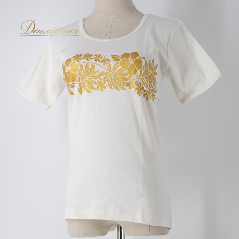 フラダンス 衣装 トップス まとめ売り 全3点 セット 白 金 ピンク HULA GIIRLS Tシャツ 練習 レッスン 伸縮 ストレッチ フラガールズ 花柄 demimoon ダンス衣装 イベント かわいい フラ ダンス ホワイト系 ピンク系 ゴールド系