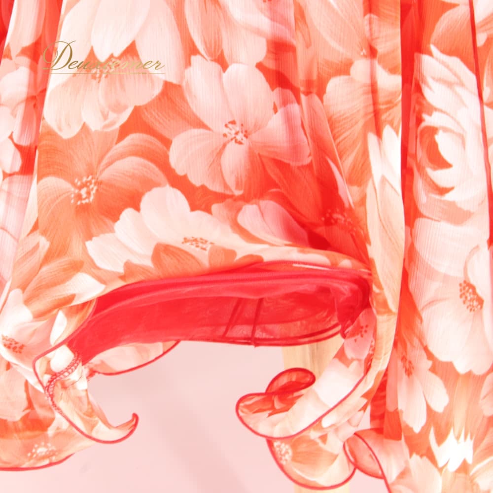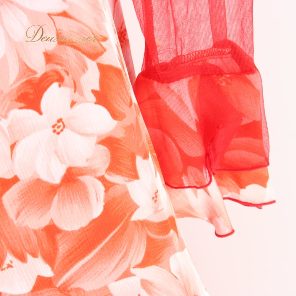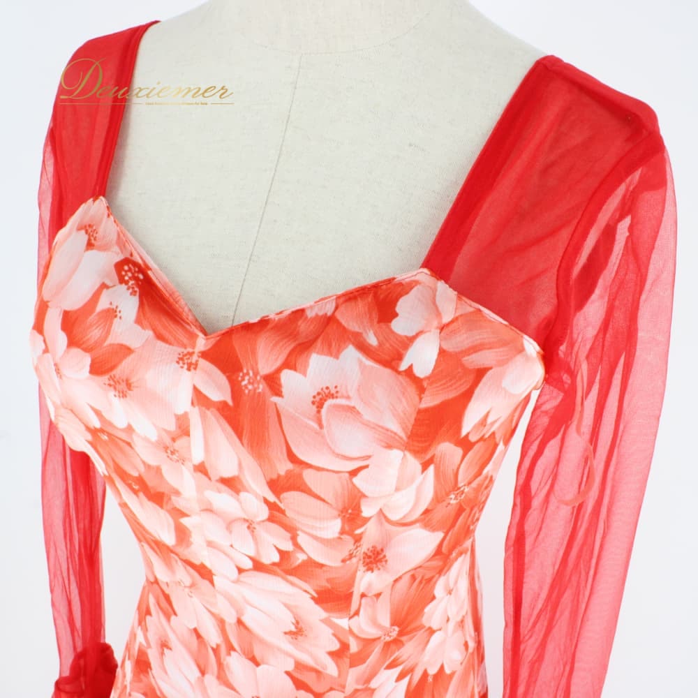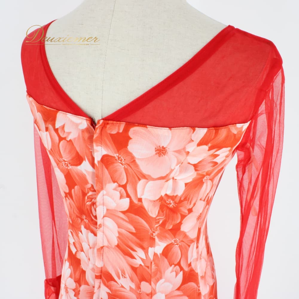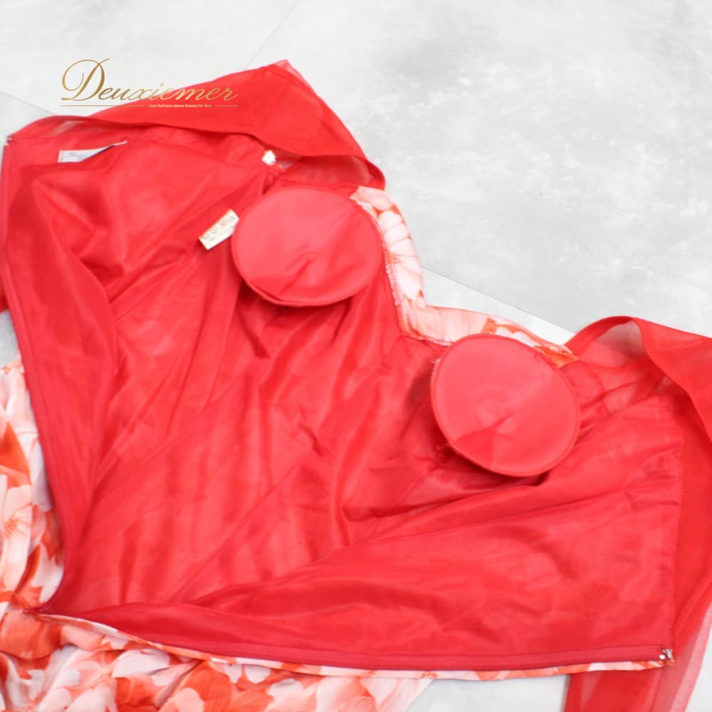 社交ダンス 衣装 スタンダード ドレス ワンピース パーティドレス Dance Fashion Pier ホワイト系 レッド系 白 赤 花柄 レース 長袖 社交ダンスドレス スタンダード用ワンピース 花柄ドレス フラワー柄 ワンピースドレス レース風 花モチーフ フレアスカート ロング丈 ひざ下丈 ロングスリーブ 長袖ドレス 透け感 袖あり オレンジ系 朱色系 発表会 ダンス衣装 パーティー用ドレス ポリエステル 洗練 ステージ衣装 エレガント かわいい フェミニン 大人可愛い 競技用