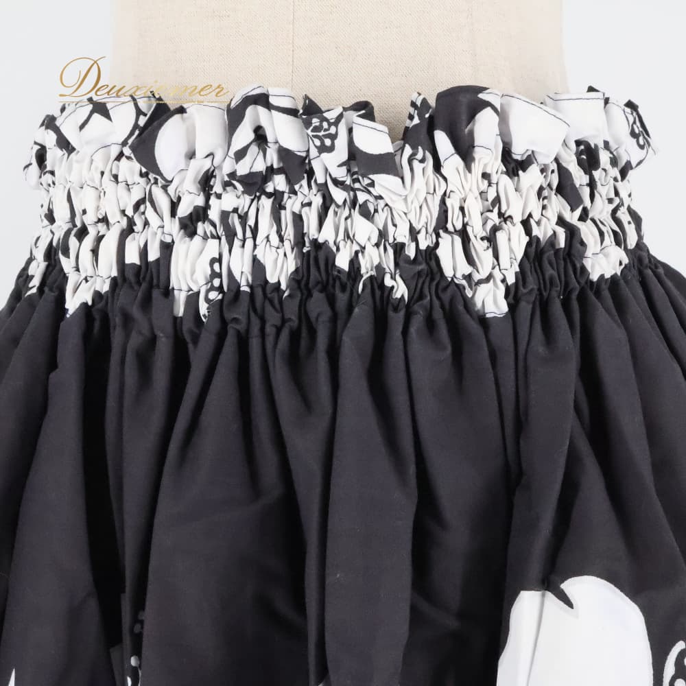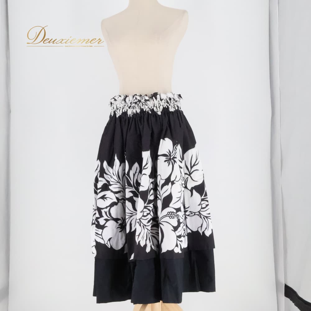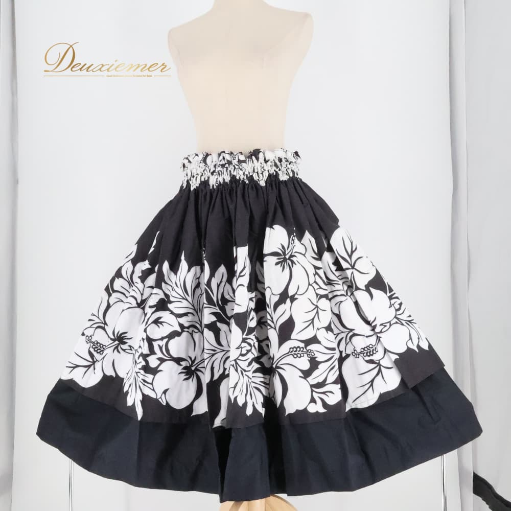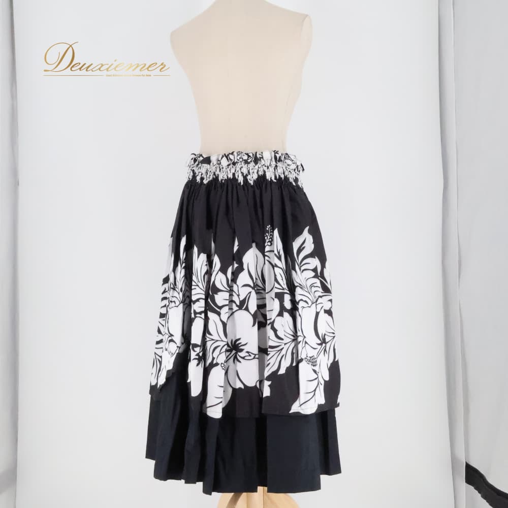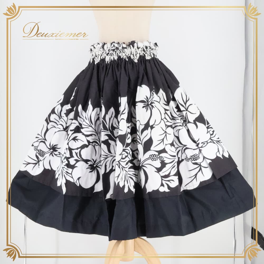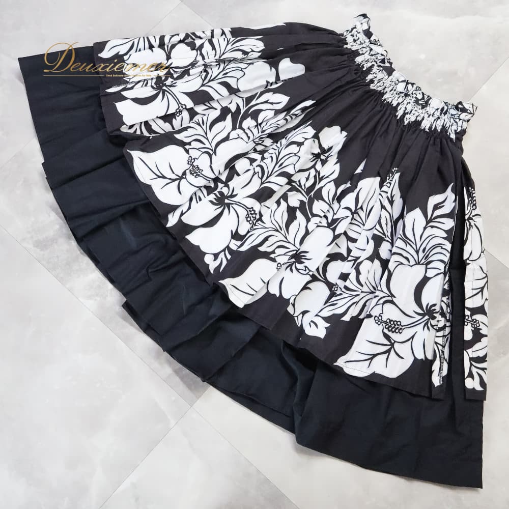 フラダンス 衣装 パウスカート TYM ブラック系 ホワイト系 モノトーン フリル ツーカラー ハイビスカス柄 華やか きれい 上品 大人っぽい かわいい 黒 白 ダンス衣装 ハワイアンダンス レディース ハワイアン アロハ フラ ダンス レッスン 練習