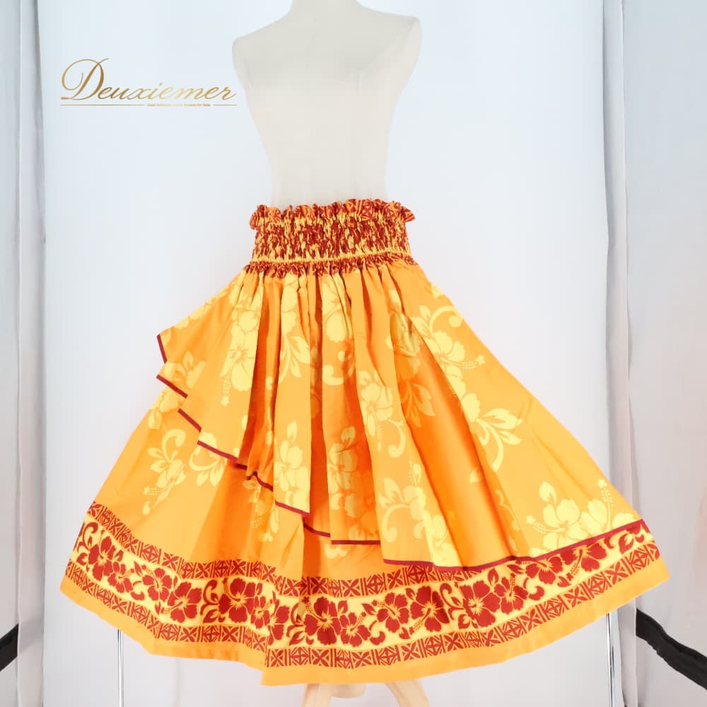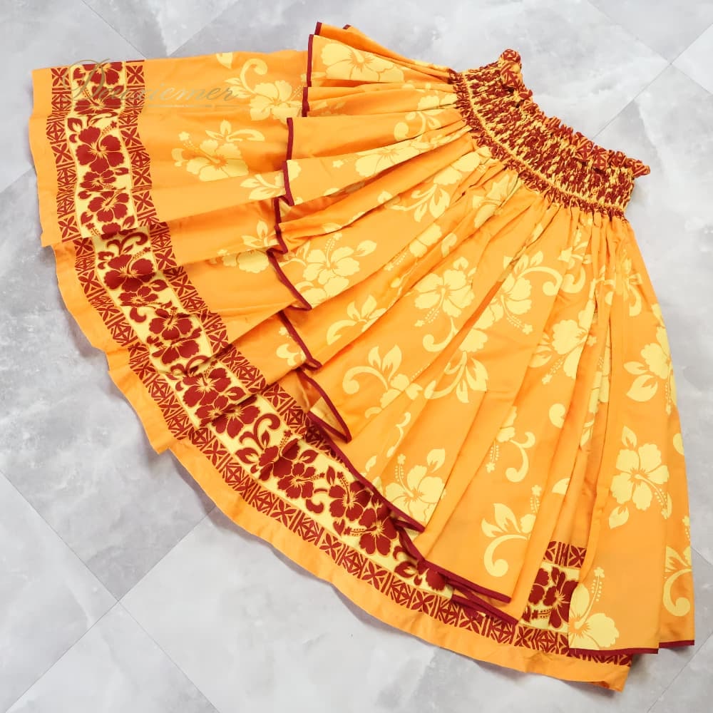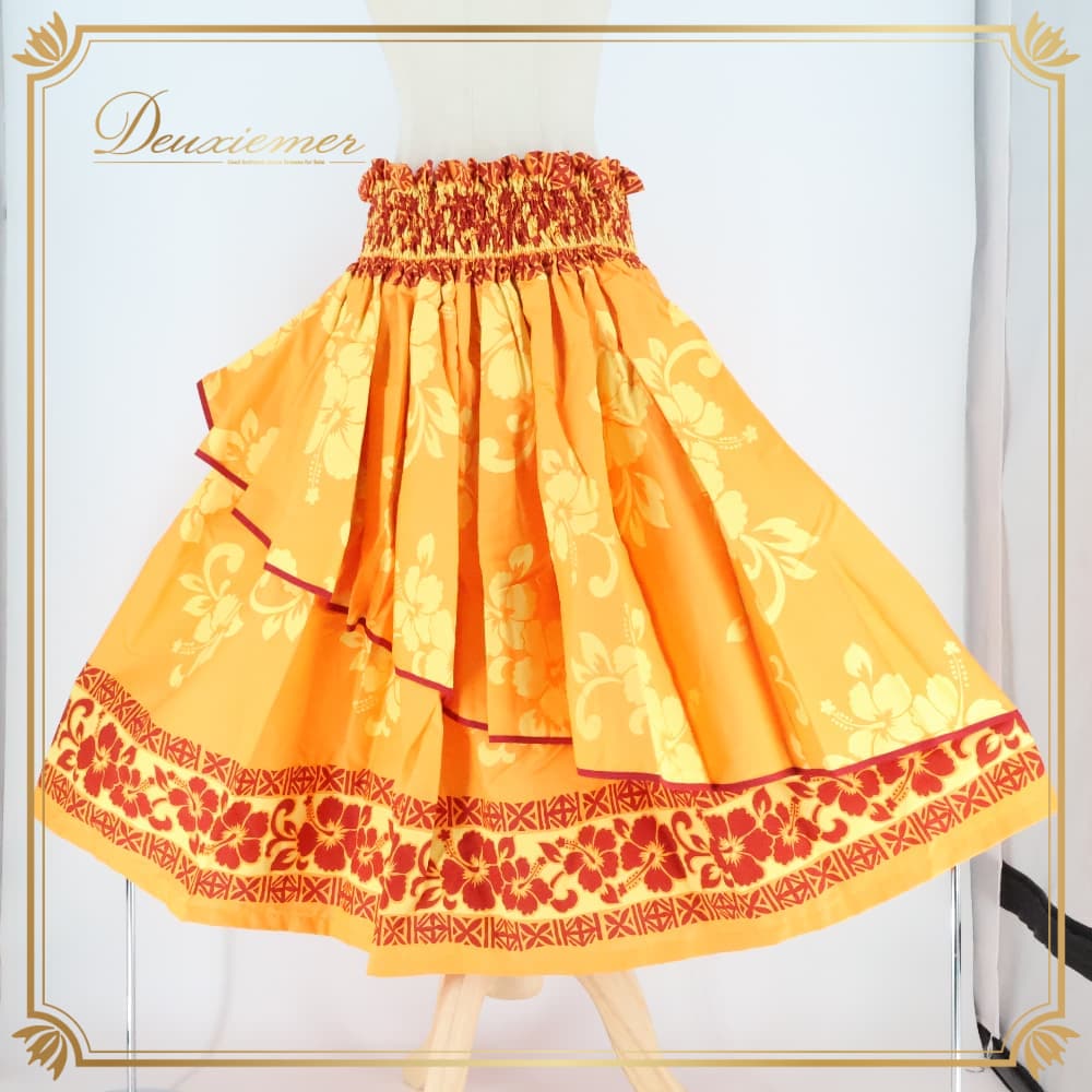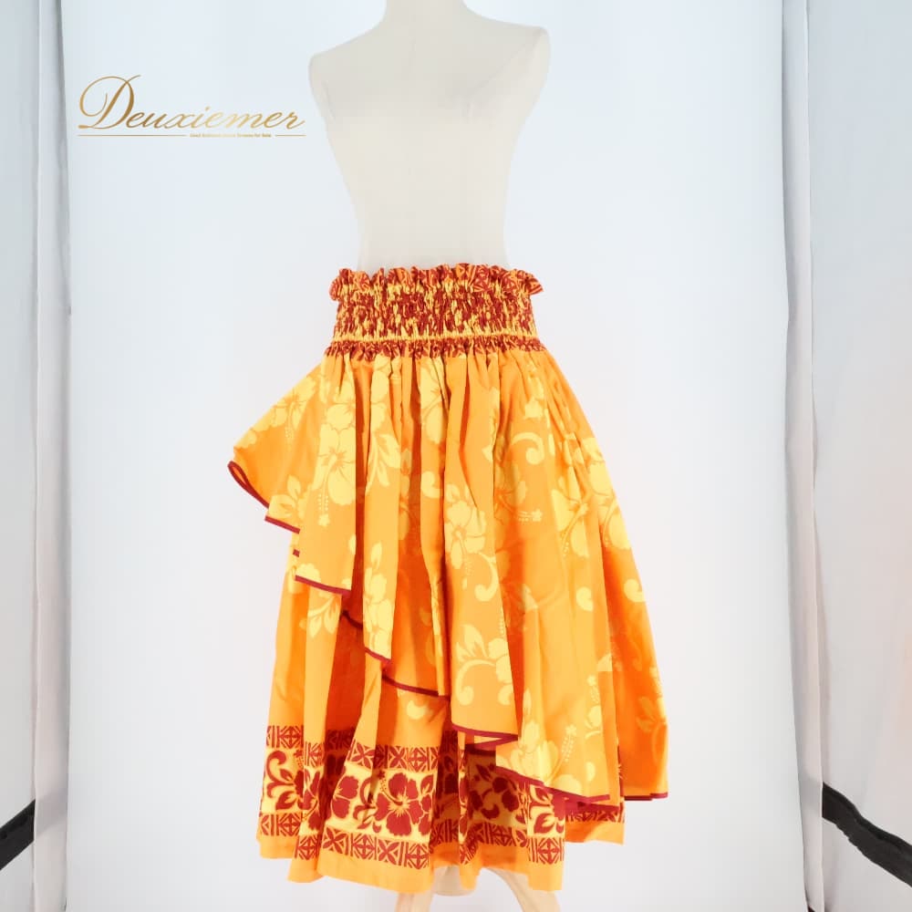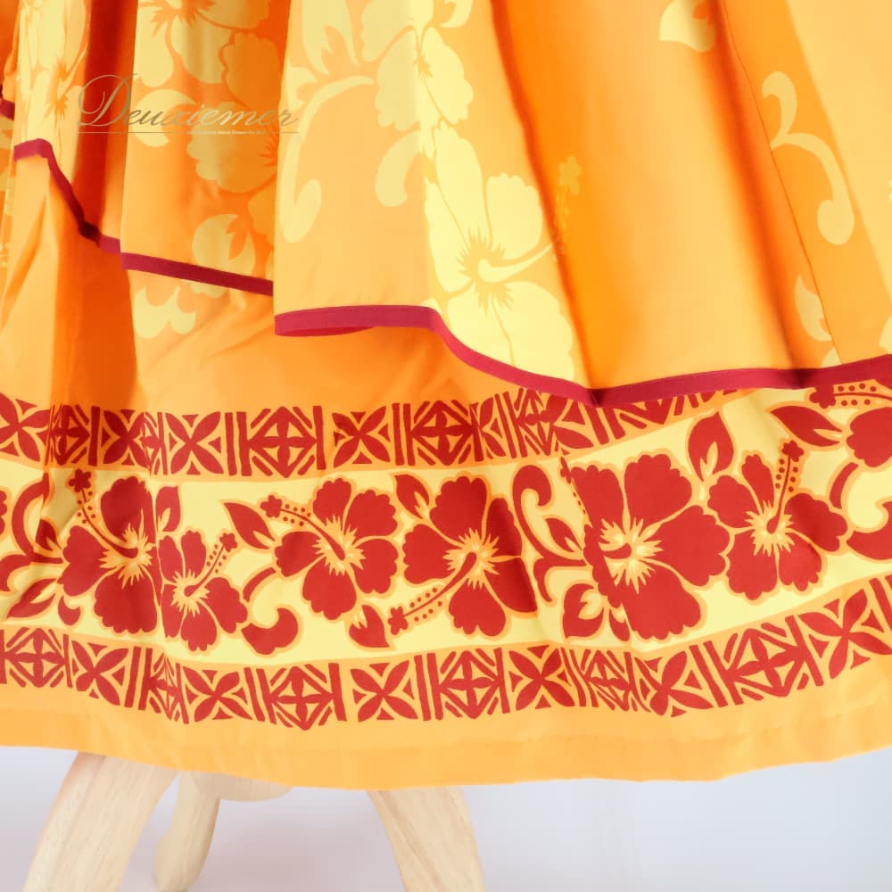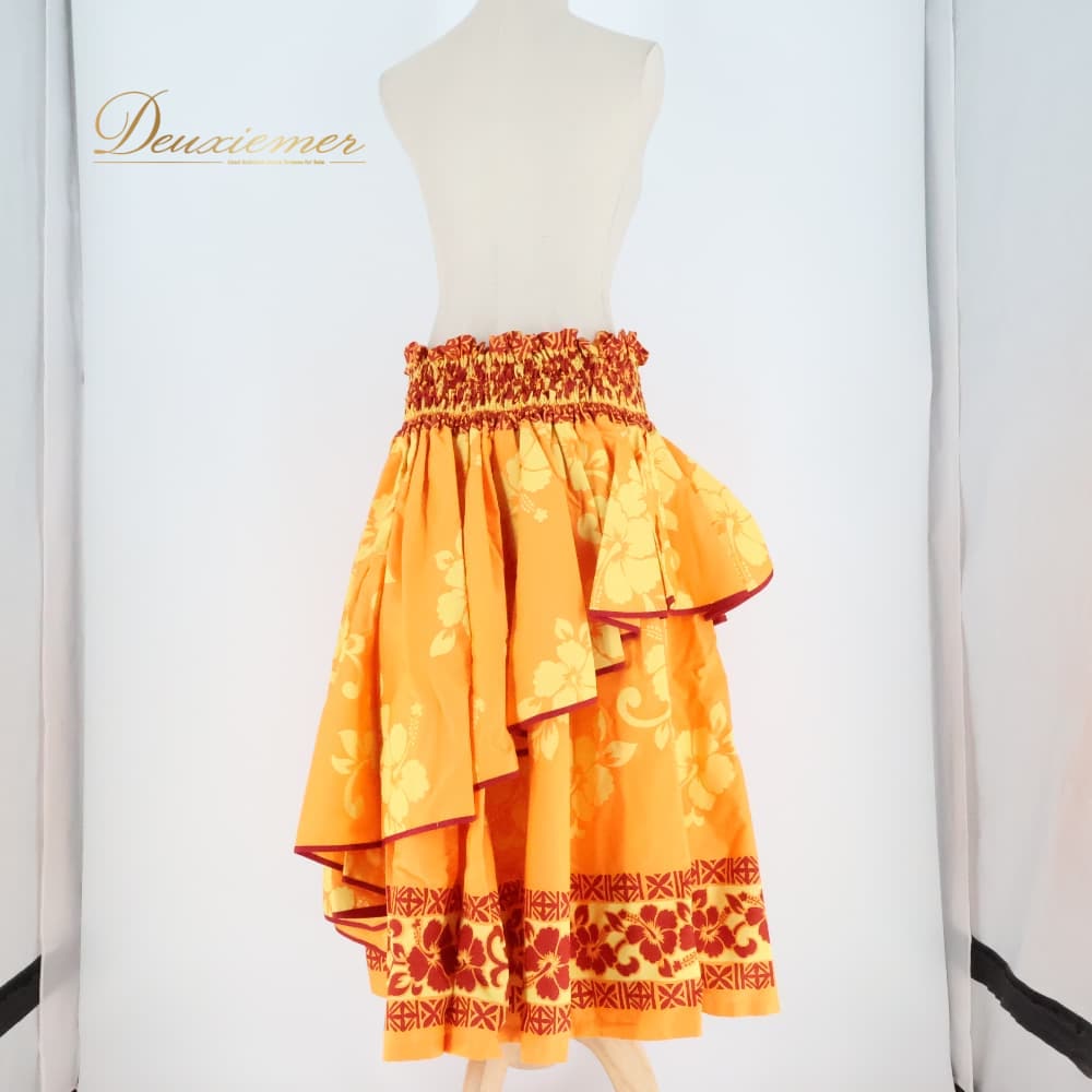フラダンス 衣装 パウスカート パンドール オレンジ系 Paondor アシンメトリー ハイビスカス柄 かわいい 華やか 鮮やか 明るい 橙 赤 ダンス衣装 ハワイアンダンス レディース ハワイアン アロハ ハワイアンプリント フラ ダンス レッスン 練習