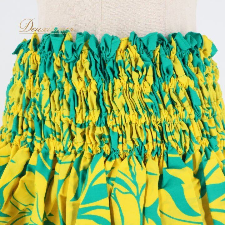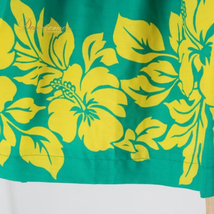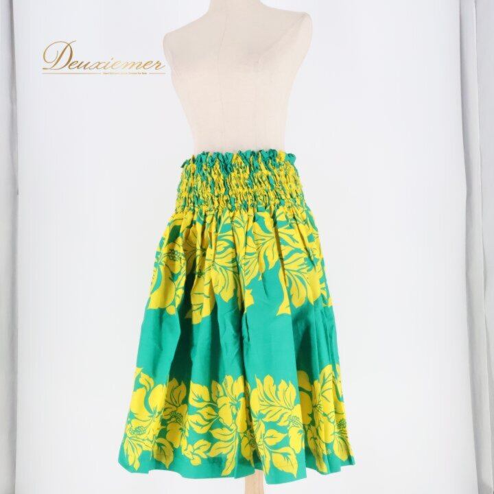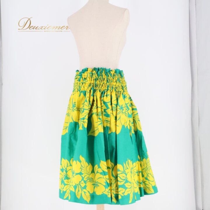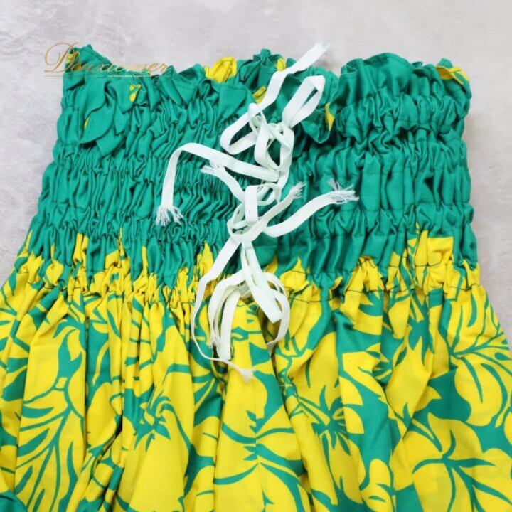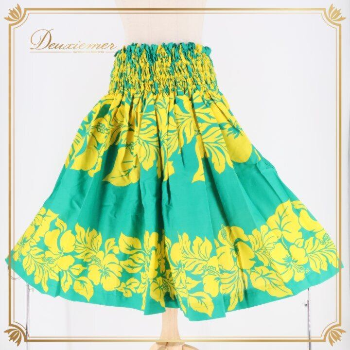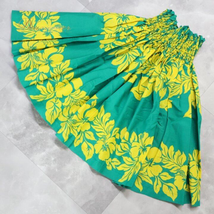 フラダンス 衣装 パウスカート グリーン系 イエロー系 ツーカラー ハイビスカス柄 シングル 華やか 鮮やか かわいい 明るい 緑 黄 ダンス衣装 ハワイアンダンス レディース ハワイアン アロハ ハワイアンプリント フラ ダンス レッスン 練習
