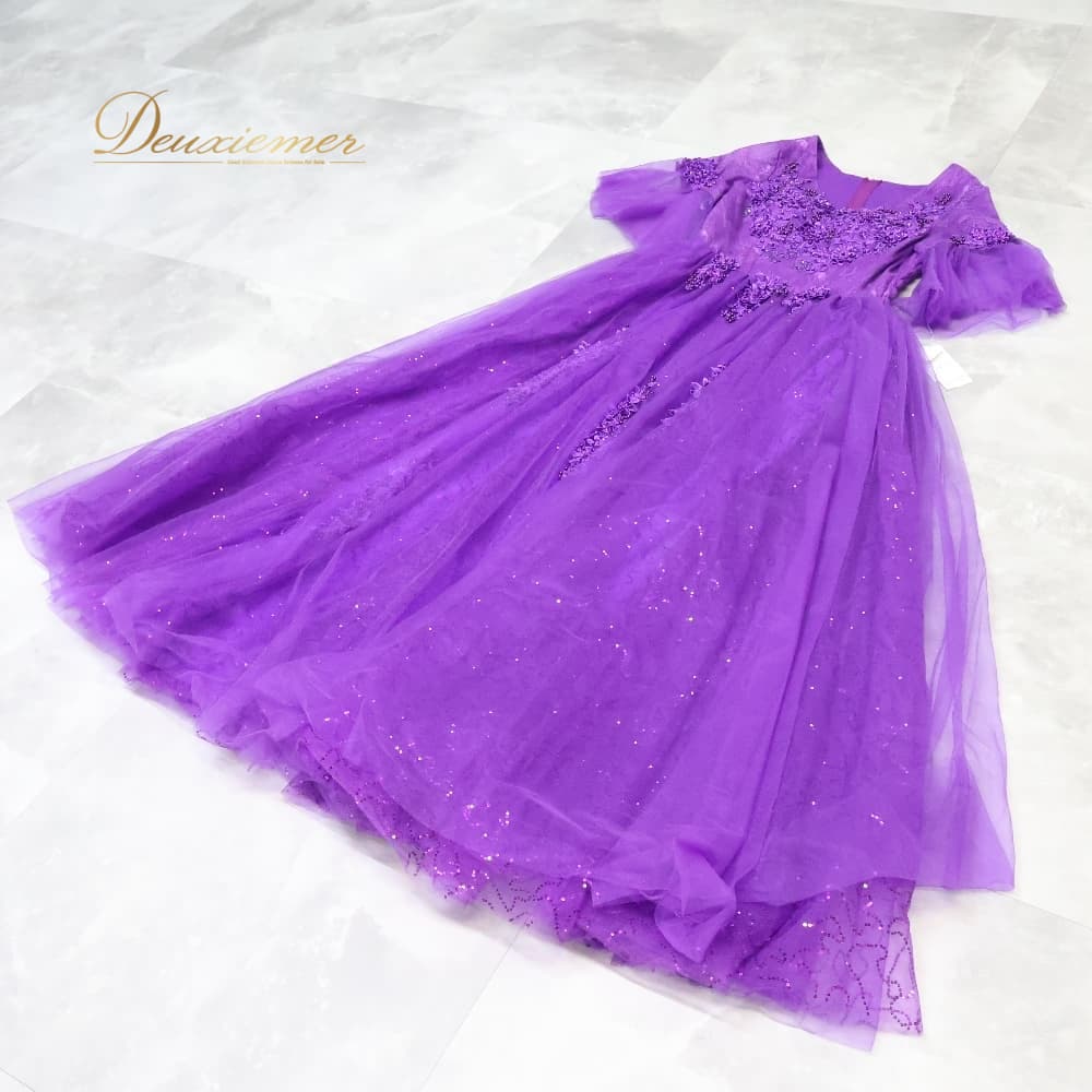 パーティドレス ワンピース ドレス パープル系 レインボー RAINBOW 紫 発表会 パーティ ロングドレス レース ダンス 演奏会 舞台 ふんわり キラキラ 上品 エレガント 華やか 舞台衣装 コンサート衣装 イベント衣装 発表会ドレス レースドレス ダンスドレス 演奏会ワンピース パーティー用
