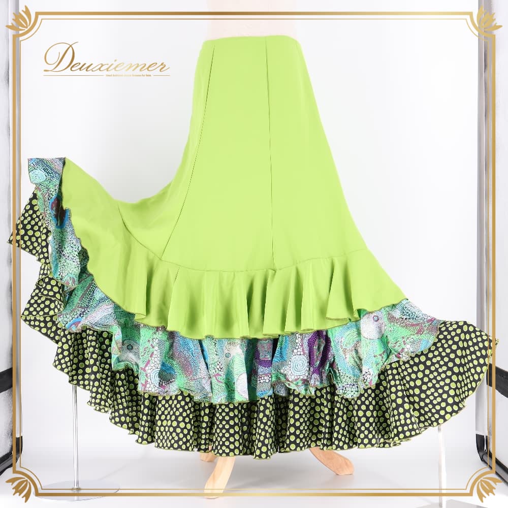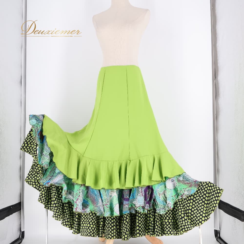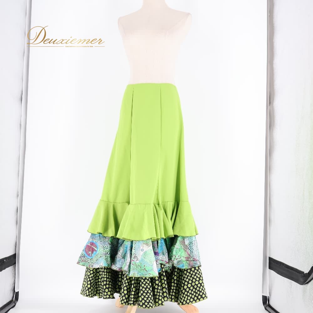 フラメンコ 衣装 エルモサイベリア HERMOSAIBERIA ファルダ スカート ブラック系 ブルー系 グリーン系 黒 緑 黄緑 青 柄 模様 ダンス 発表会 フラメンコファルダ ボランテレディース