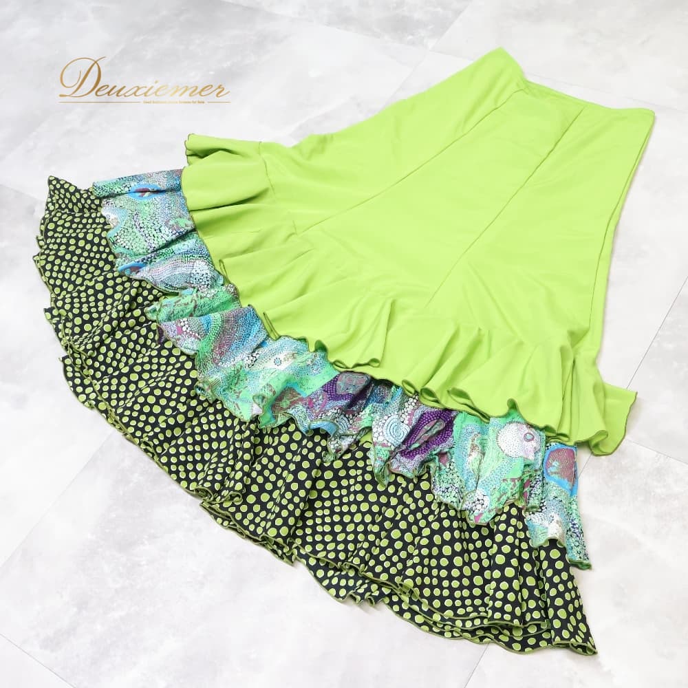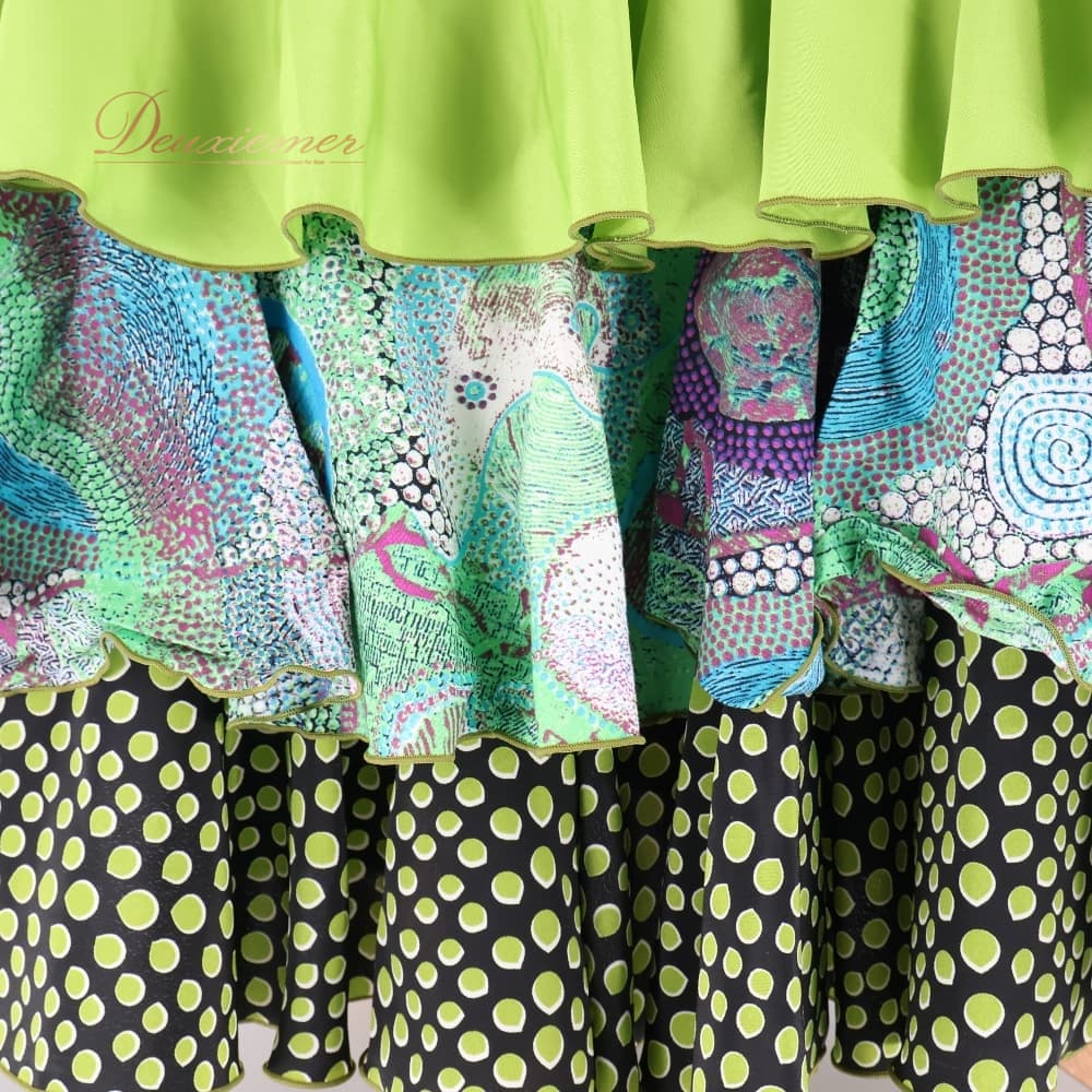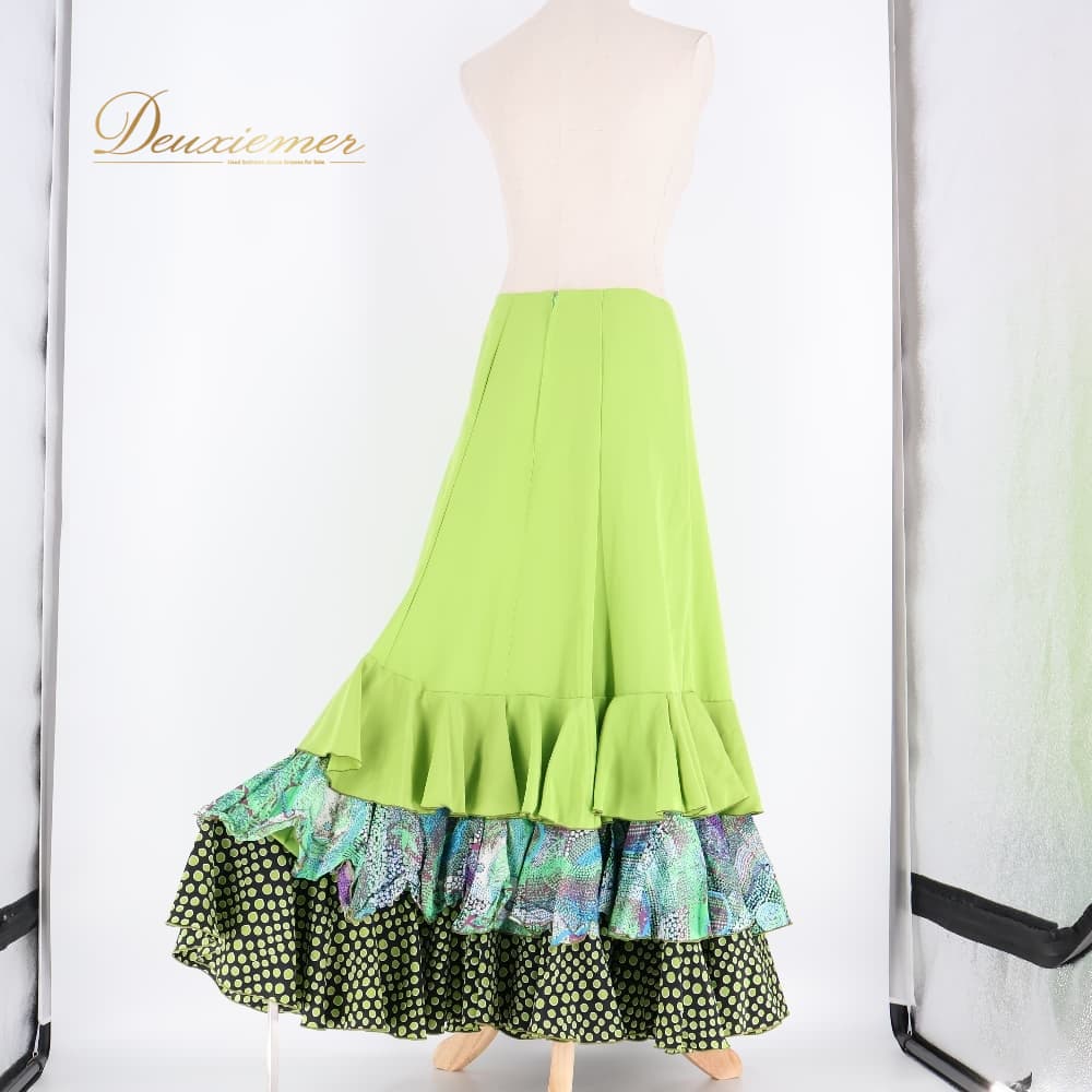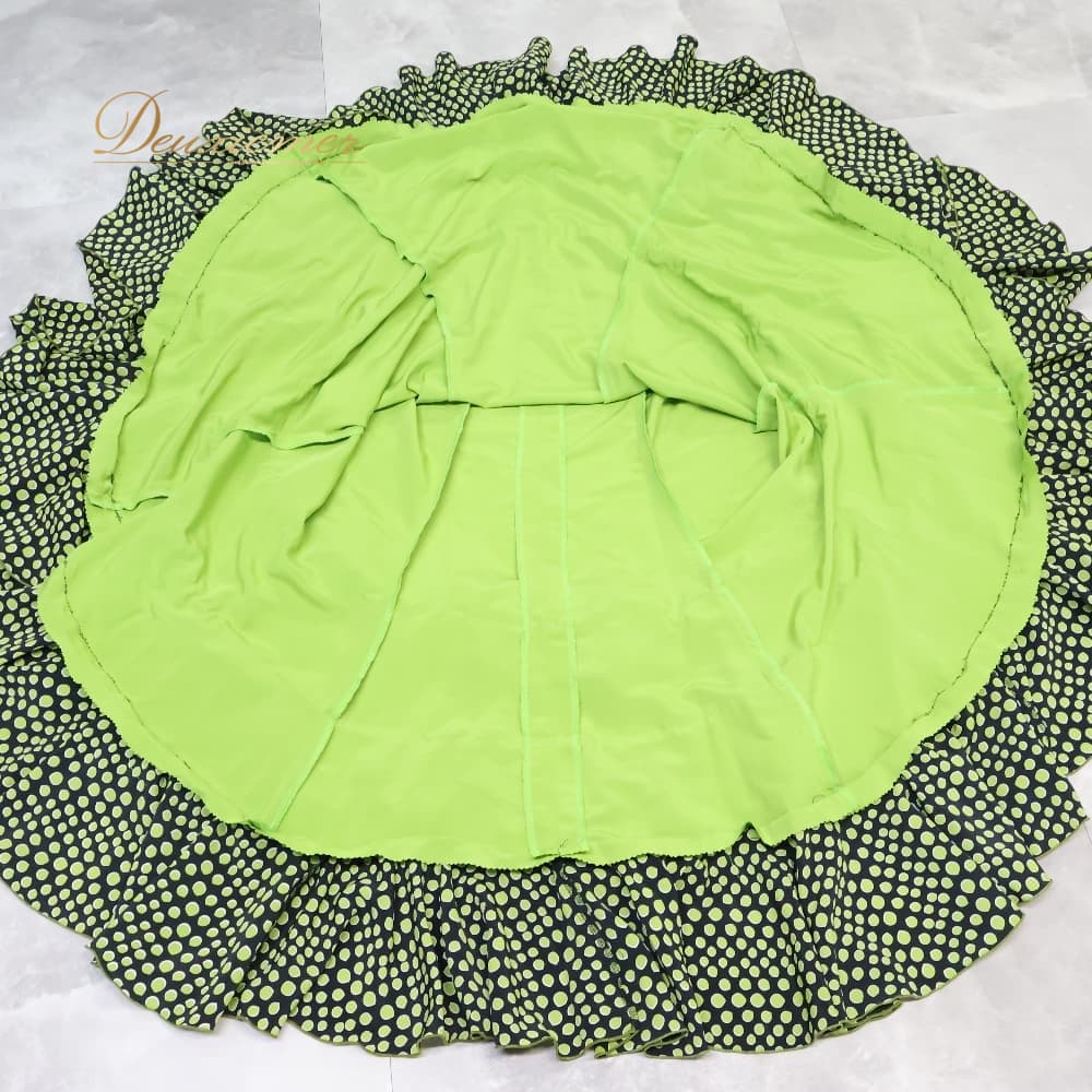 フラメンコ 衣装 エルモサイベリア HERMOSAIBERIA ファルダ スカート ブラック系 ブルー系 グリーン系 黒 緑 黄緑 青 柄 模様 ダンス 発表会 フラメンコファルダ ボランテレディース