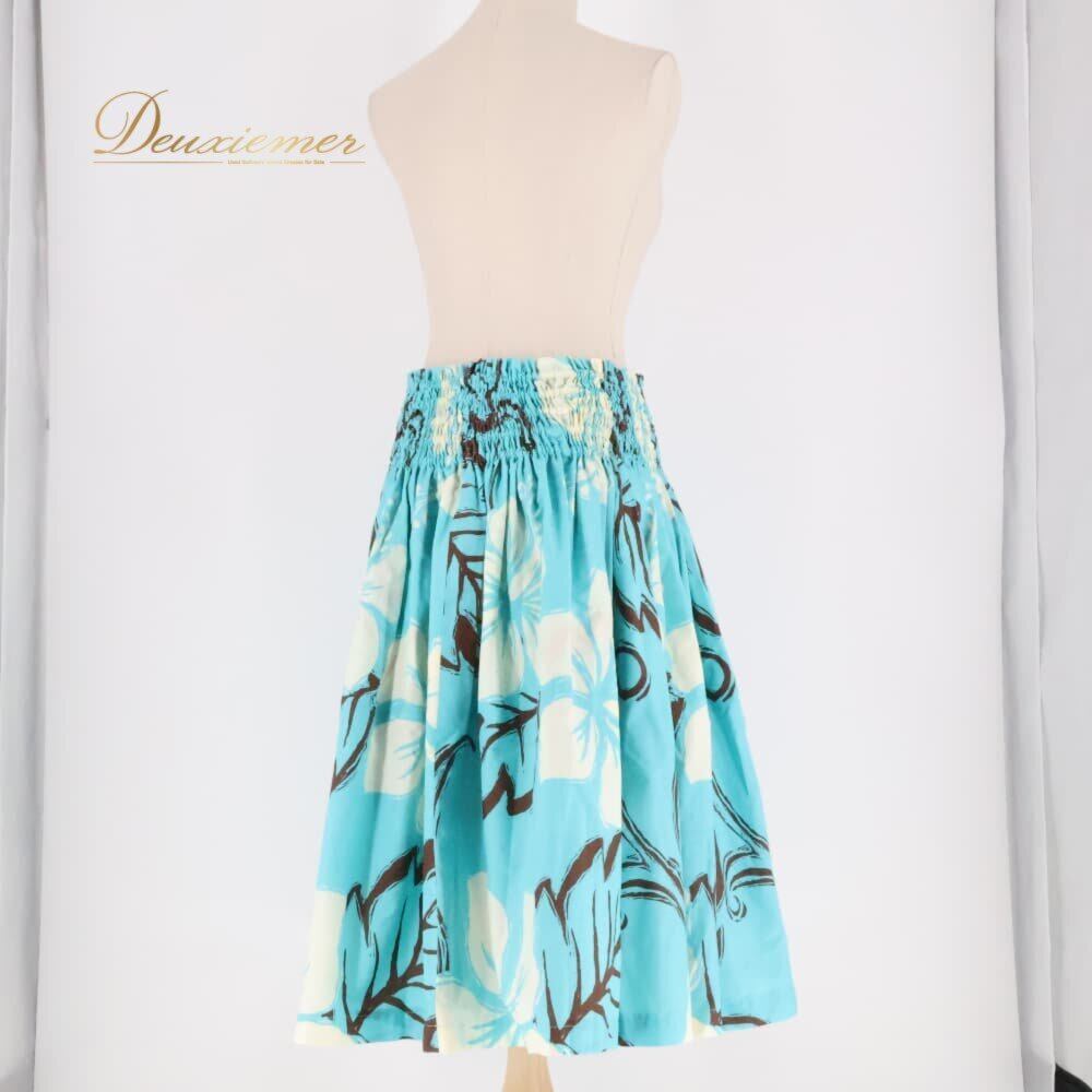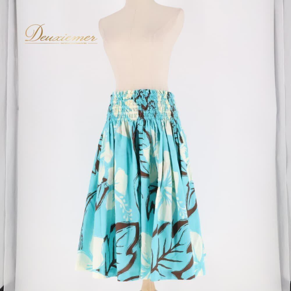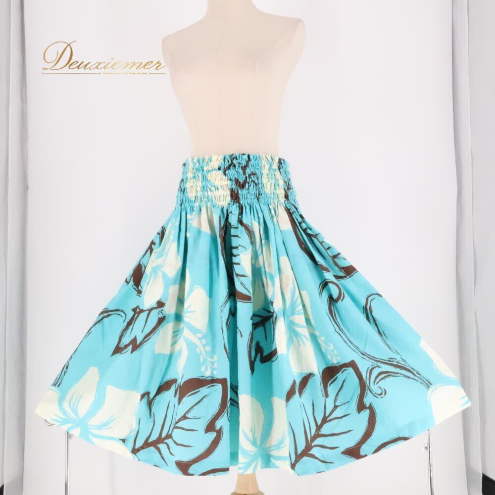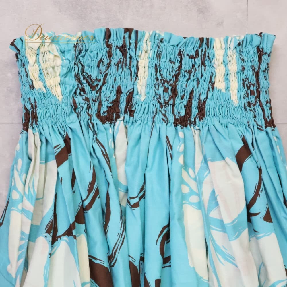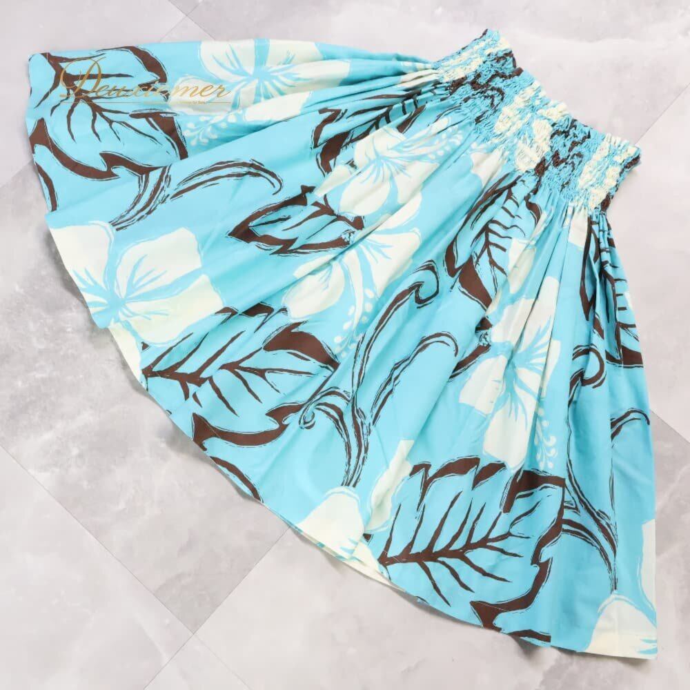フラダンス 衣装 パウスカート ブルー系 ハイビスカス柄 シングル シンプル かわいい 華やか 鮮やか 明るい 爽やか 水色 白 茶 ダンス衣装 ハワイアンダンス レディース ハワイアン アロハ ハワイアンプリント フラ ダンス レッスン 練習 水色系 青系