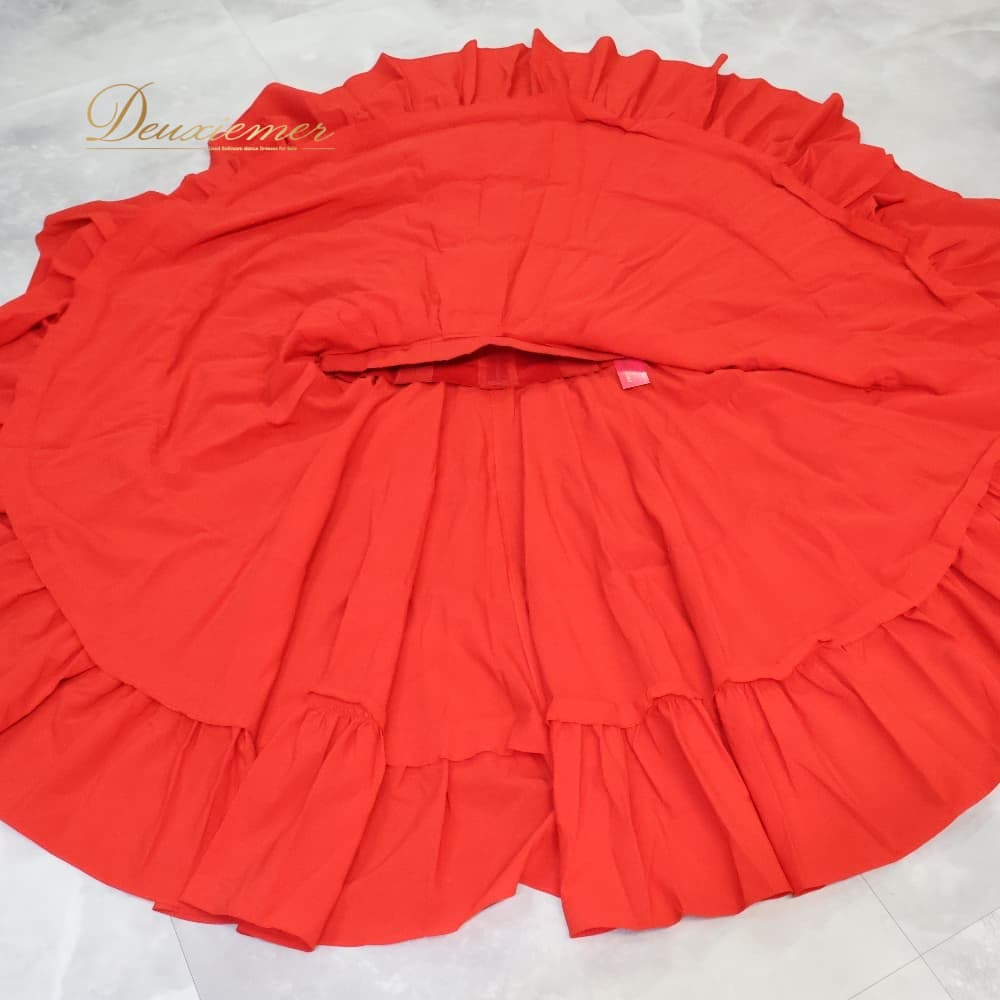 フラメンコ 衣装 ファルダ スカート レッド系 アトリエベリッシマ atelier Bellissima 赤 無地 ボランテ フリル ダンス パーティ 発表会 フラメンコスカート 赤スカート ボランテスカート フリルスカート ダンス衣装 発表会衣装 舞台衣装 レッスン 女性用 ステージ衣装
