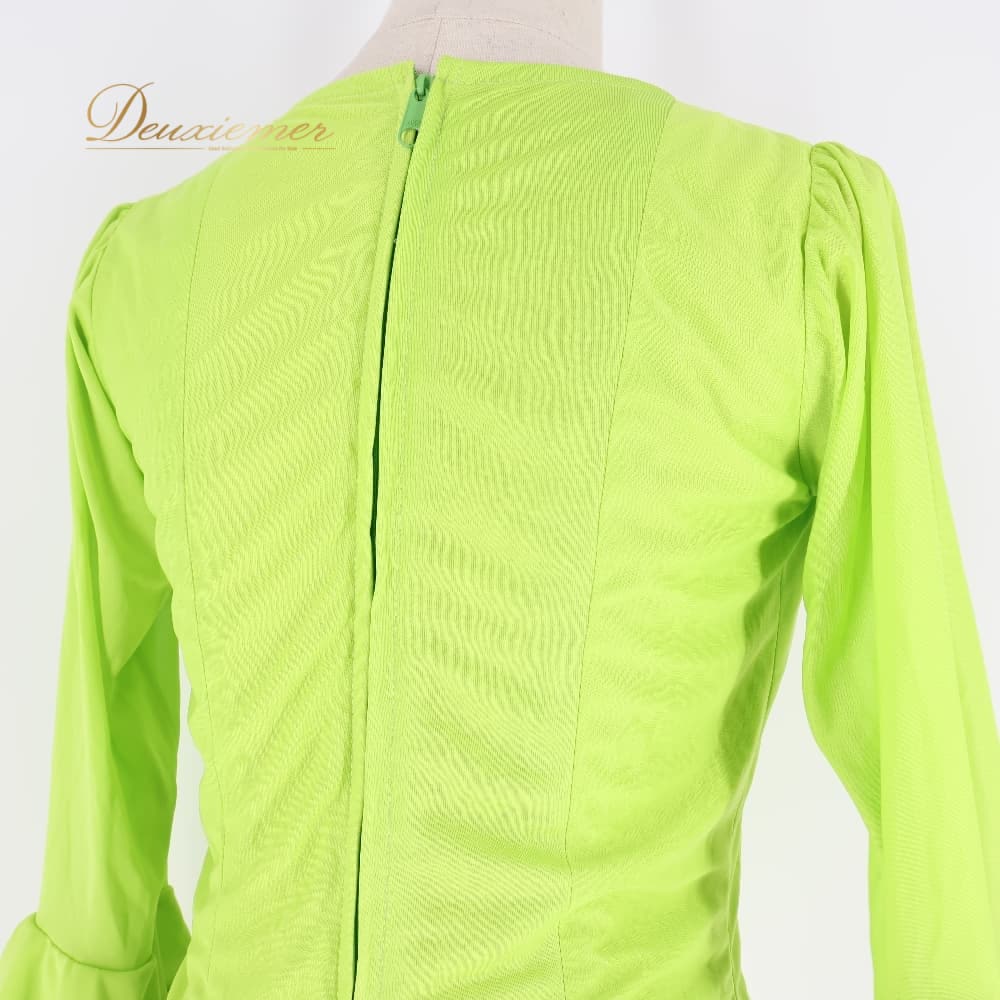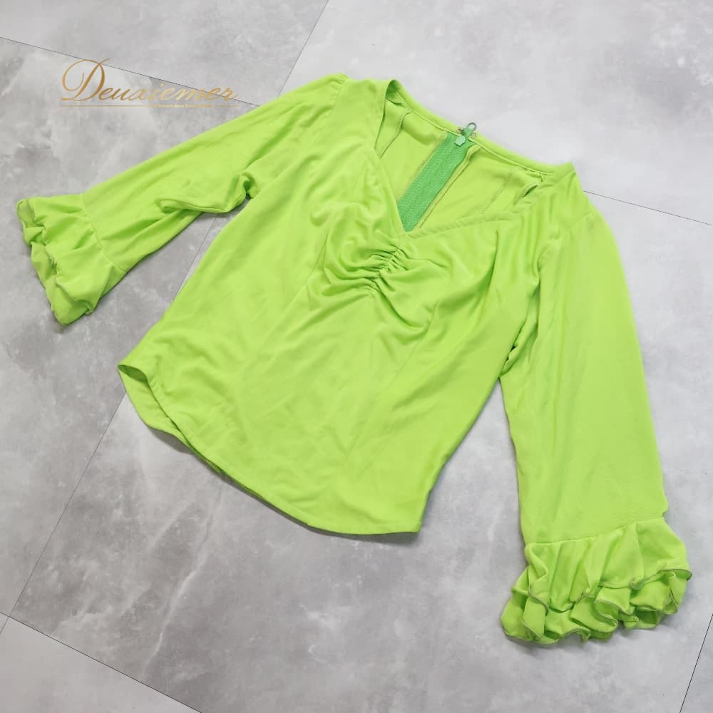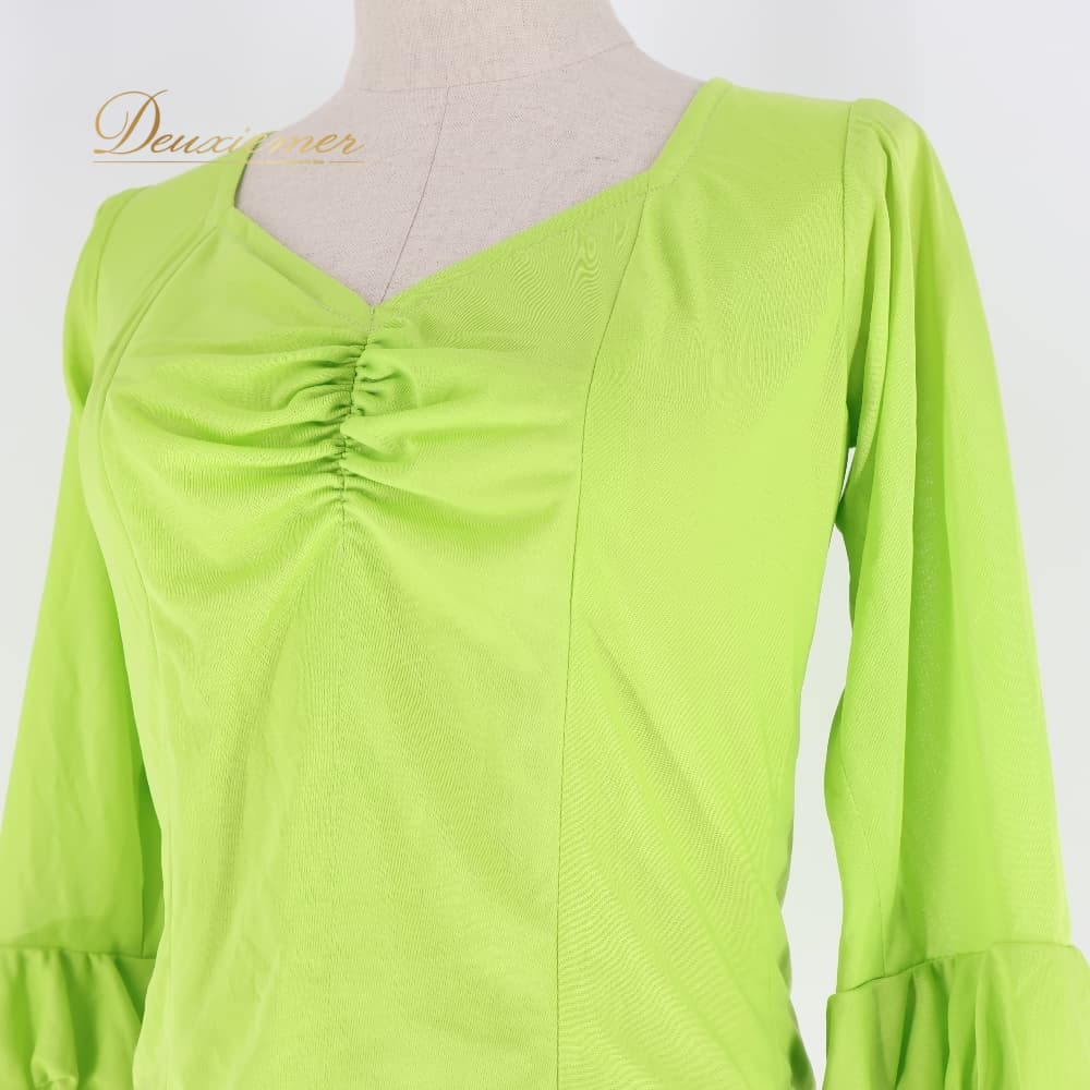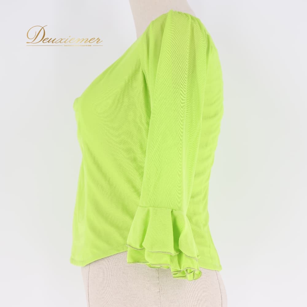 フラメンコ 衣装 トップス ブラウス グリーン系 黄緑 伸縮 ストレッチ フリル ダンス パーティ レッスン 練習着 無地 明るい レディース ダンス衣装 練習用 ステージ衣装 発表会衣装 シンプル ライトグリーン フラメンコレッスン衣装