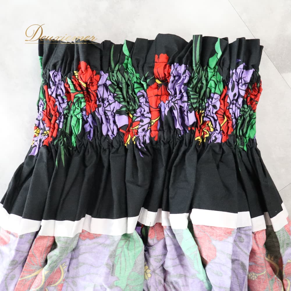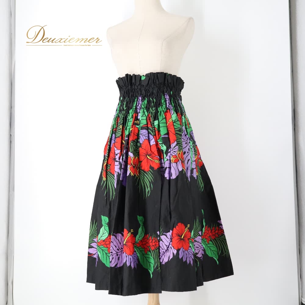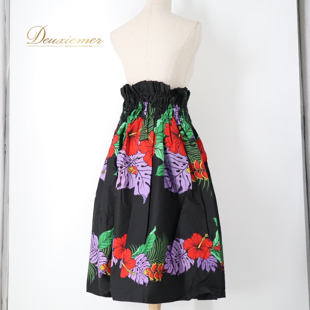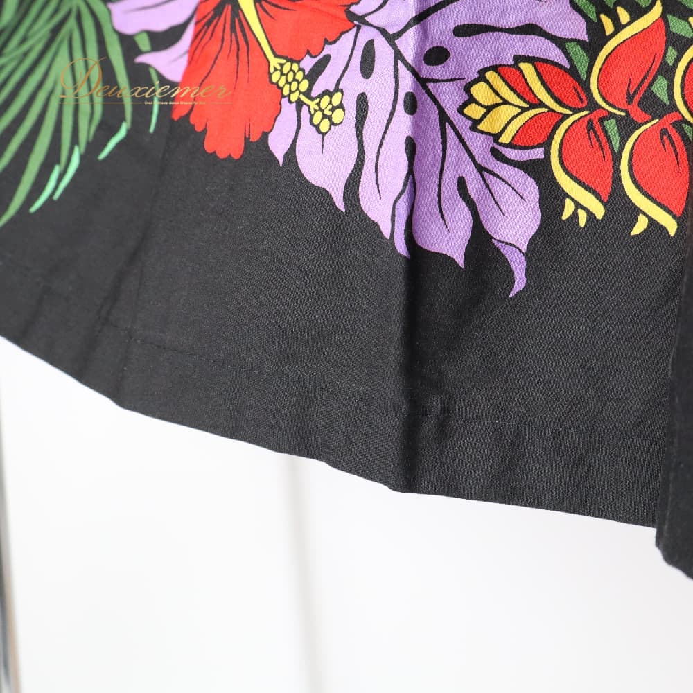 フラダンス 衣装 パウスカート ブラック系 ハイビスカス柄 モンステラ柄 黒 ハワイアンプリント アロハ フラ ダンス レッスン 練習 シングル スカート フレア 軽やか 華やか 鮮やか かわいい おしゃれ 上品 大人っぽい ダンス衣装 ハワイアンダンス レディース レッド系 パープル系 グリーン系 イエロー系 ハワイ 文化 キッズ ではない 大人 黒系 3本ゴム ウエストゴム ゴム入り 伸縮 ウエスト楽 フレアスカート 単品 柄入り 花柄 葉柄 南国 フラレッスン ルームウェア ダンス練習 発表会