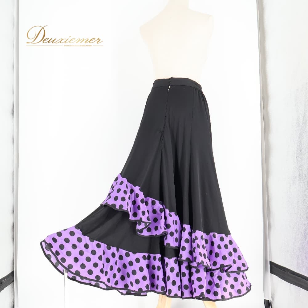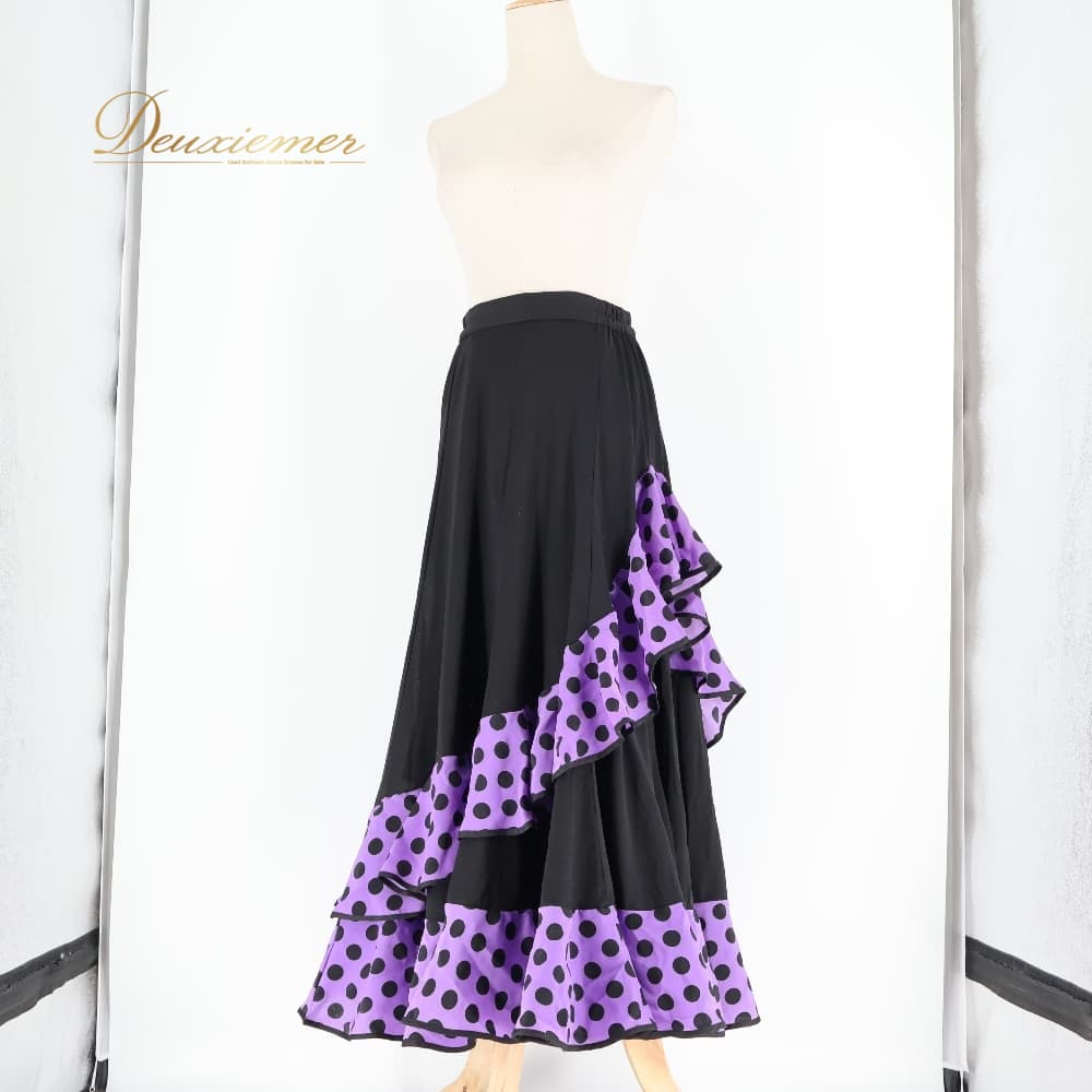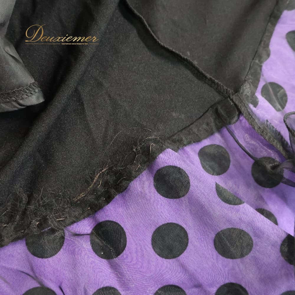 フラメンコ 衣装 ファルダ スカート ブラック系 パープル系 黒 紫 プリマブティック prima boutique ボランテ フリル 水玉 ドット レッスン 練習着 ダンス パーティ 発表会 レディース 練習用 レッスン用 発表会用 ダンス衣装 舞台衣装 水玉柄 かわいい