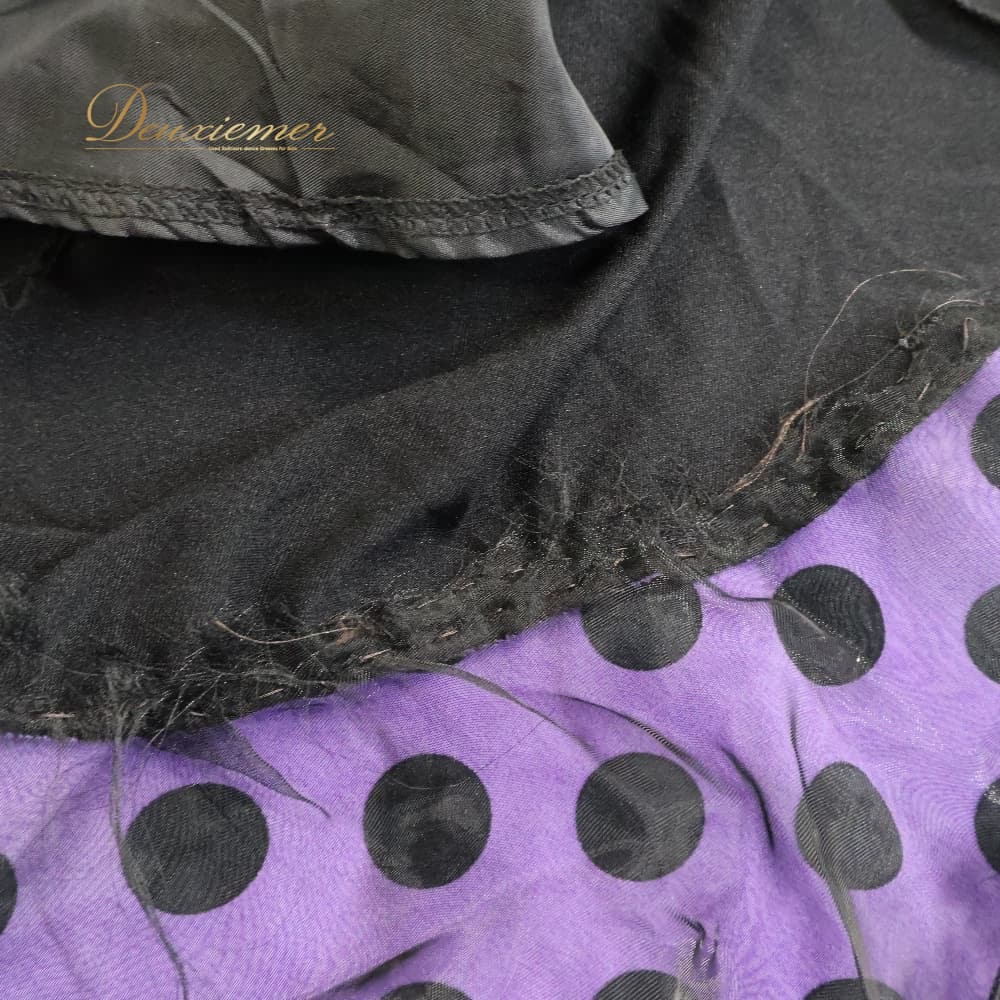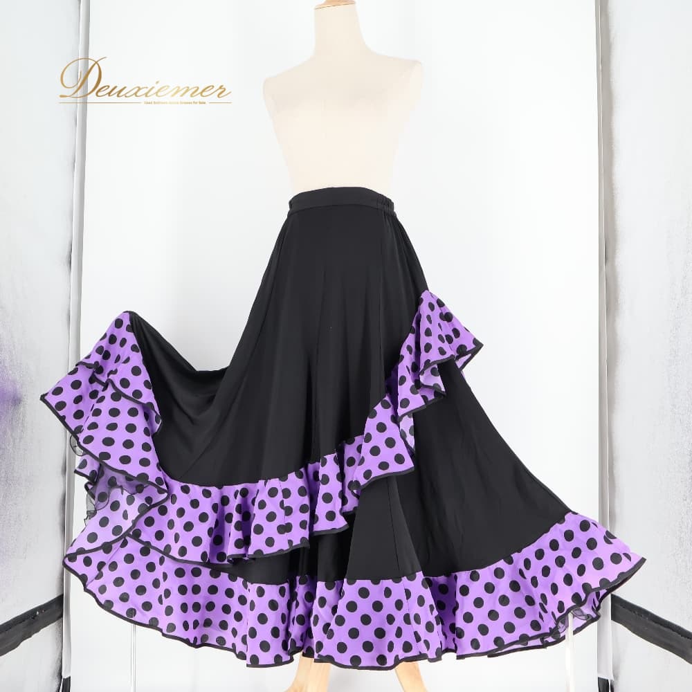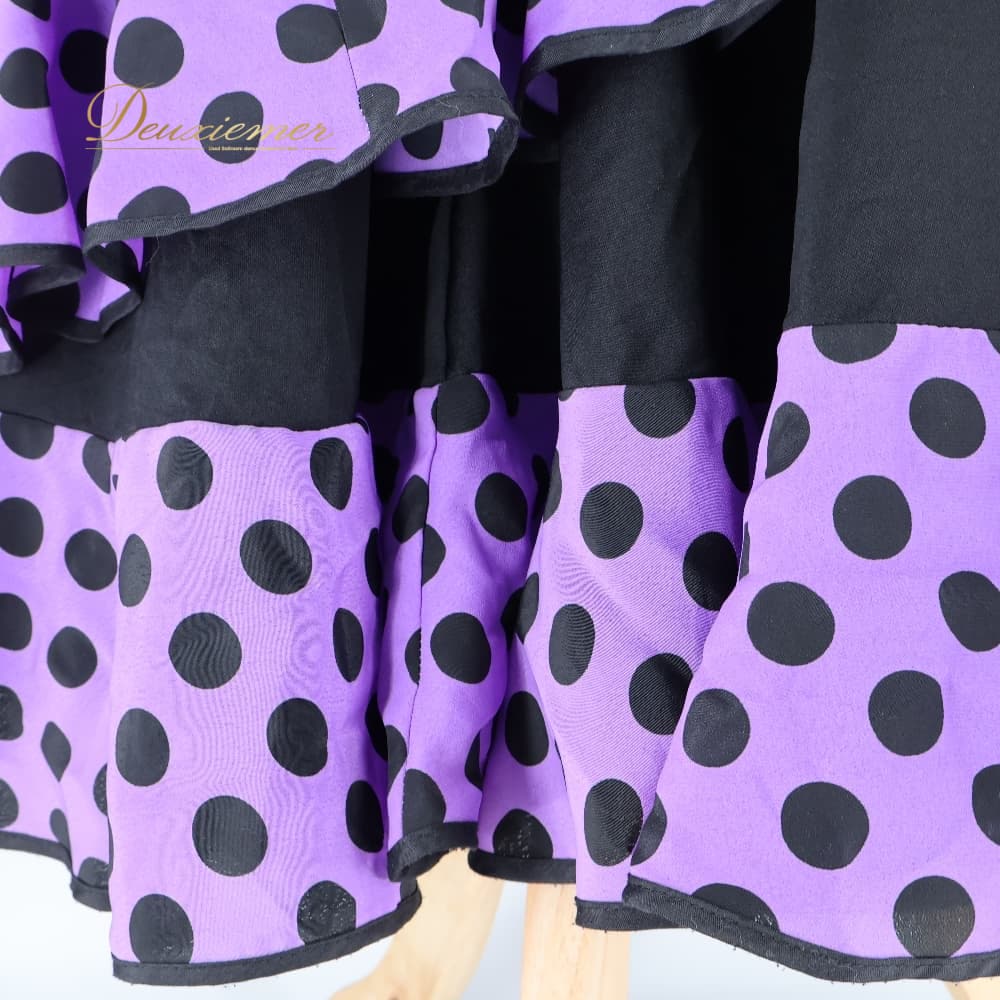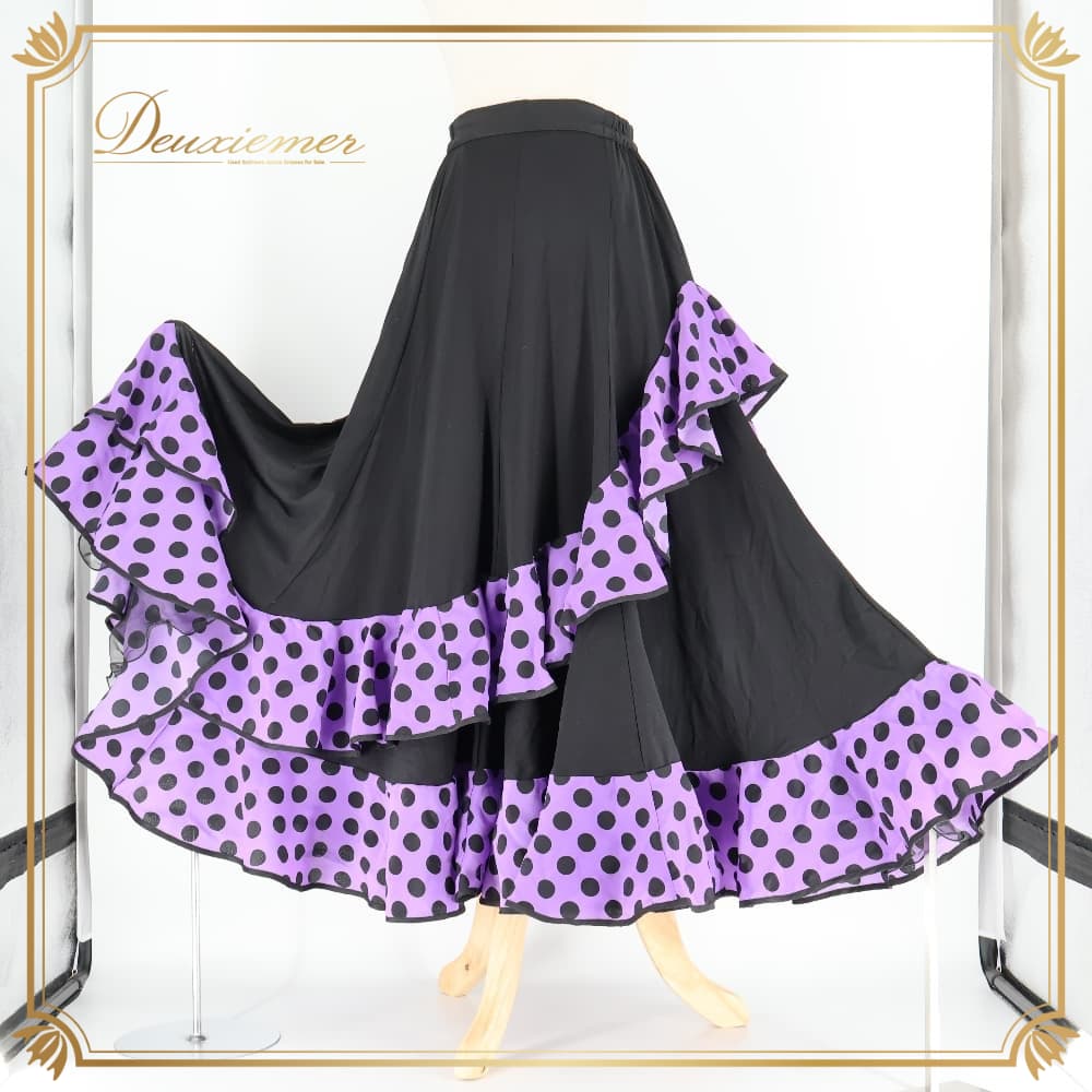 フラメンコ 衣装 ファルダ スカート ブラック系 パープル系 黒 紫 プリマブティック prima boutique ボランテ フリル 水玉 ドット レッスン 練習着 ダンス パーティ 発表会 レディース 練習用 レッスン用 発表会用 ダンス衣装 舞台衣装 水玉柄 かわいい