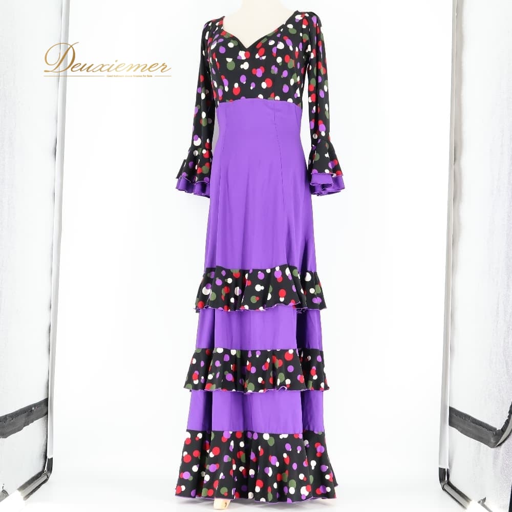 フラメンコ 衣装 ワンピース ドレス ブラック系 ホワイト系 レッド系 パープル系 黒 紫 赤 白 水玉 ボランテ フリル 長袖 ダンス パーティ 発表会 フラメンコワンピース フラメンコドレス 舞台衣装 発表会衣装 ダンス衣装 衣装用ワンピース 大人可愛い かわいい 華やか