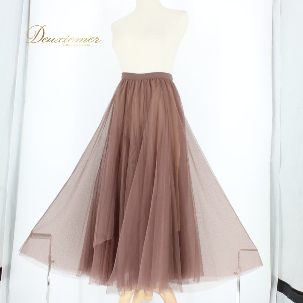 社交ダンス 衣装 スタンダード スカート レッスンウェア レディース 無地 ブラウン系 茶色 シンプル 練習着 レース 上品 フォーマル かわいい チュールスカート フレアスカート 練習用 ダンスレッスン ルンバ モダン きれいめ 大人可愛い 体型カバー 動きやすい ウエストゴム ふんわり ボリューム裾 ダンス映え パーティー 発表会 舞台衣装 モダンスタイル