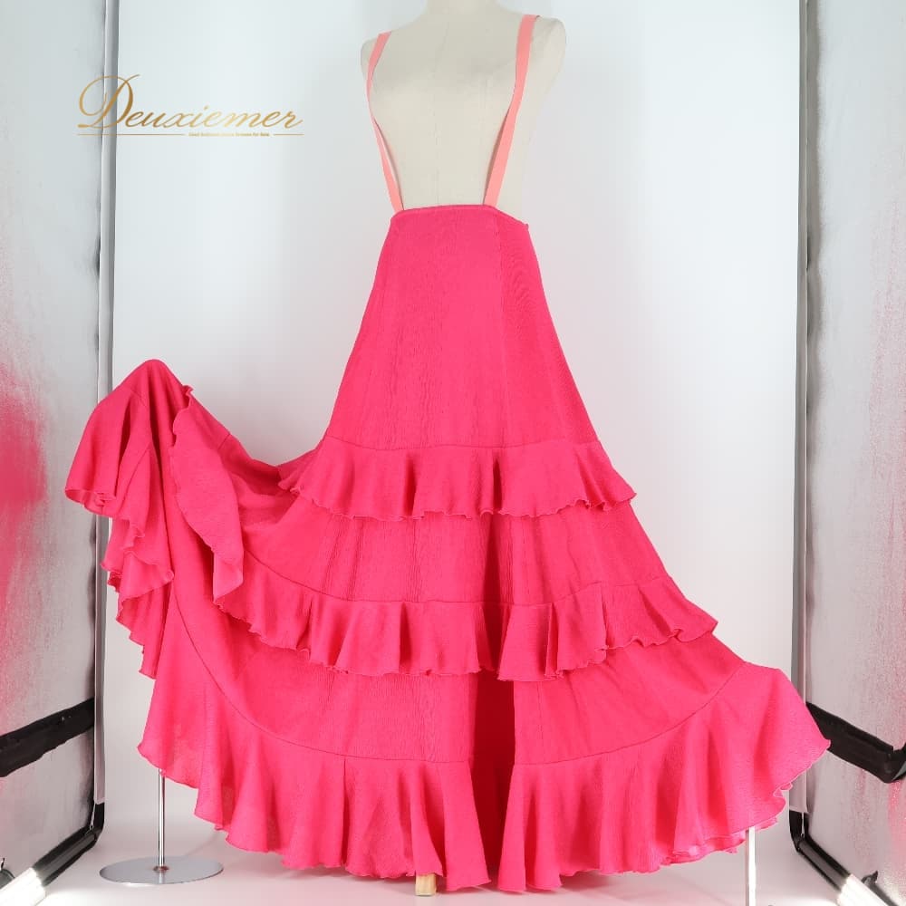 フラメンコ 衣装 ファルダ スカート ピンク系 ボランテ フリル 無地 かわいい パーティ 発表会 ダンス フラメンコ用 おしゃれ 大人可愛い 舞台衣装 発表会衣装 イベント コスチューム ダンス衣装 ロングスカート ステージ用