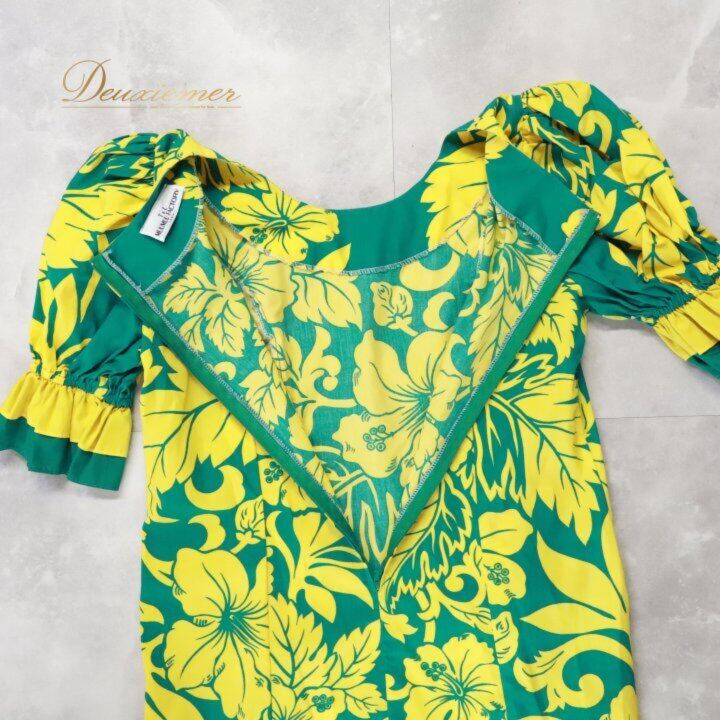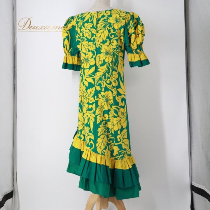 #ムームーファクトリー #TLMUUMUFACTORY #ムームー #ハワイ製 #ハワイアン #ハワイアンワンピース #グリーン #イエロー #フリル #フリルワンピース #背面ファスナー #ノーストレッチ #ビンテージ風 #レトロ #カジュアル #お出かけコーデ #リゾートコーデ #旅行コーデ #トルソー撮影 #ENUTSU
