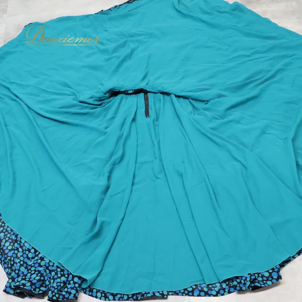 #ドレス #カラードレス #青緑 #ブルーグリーン #お洒落 #エレガント #華やか #広がるシルエット #フレアスカート #ロングドレス #マキシ丈 #背面ファスナー #ノンストレッチ #胸パッドなし #シンプルデザイン #フォーマル #パーティー #結婚式 #二次会 #ENUTSU