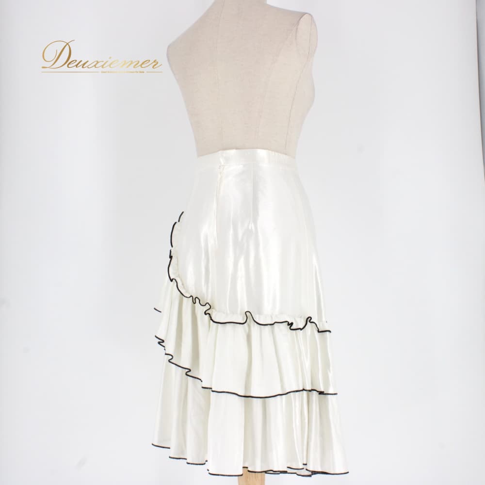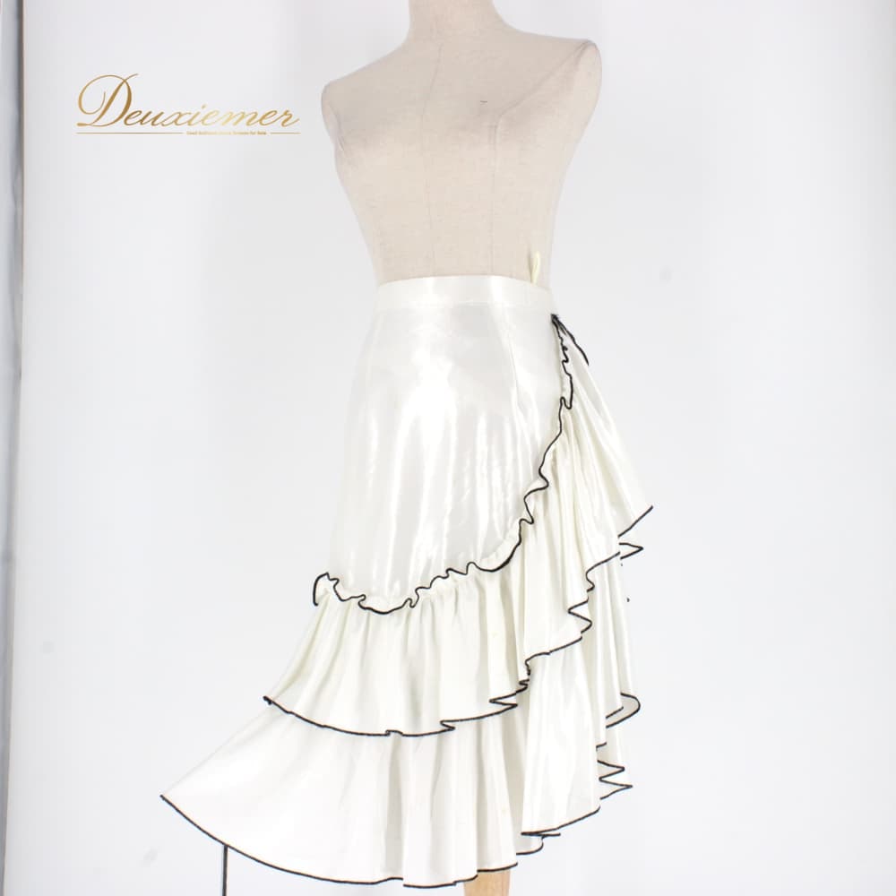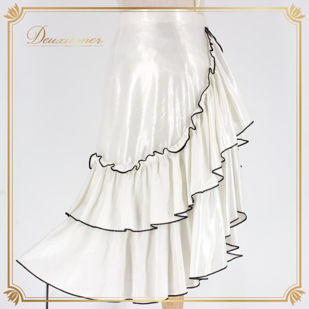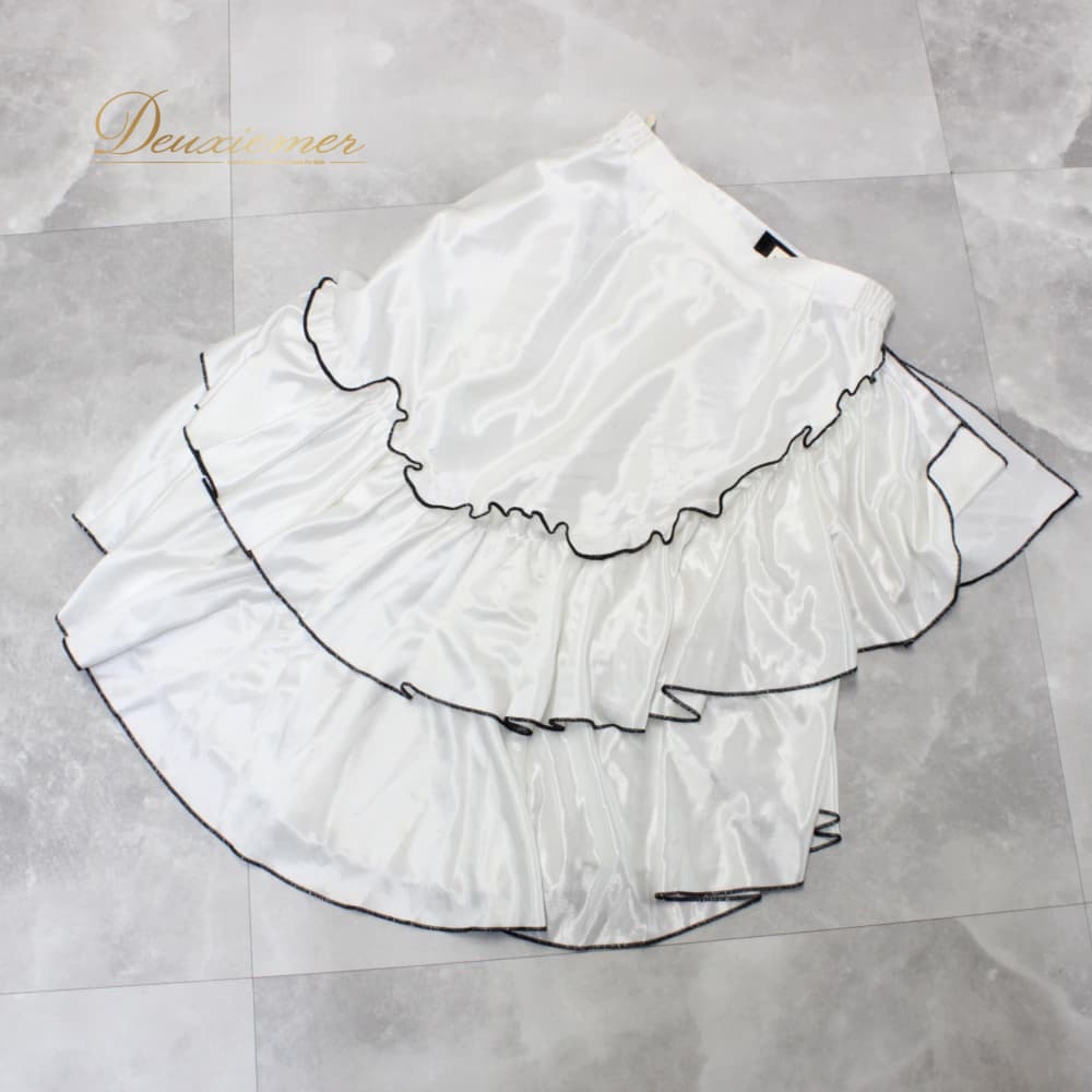社交ダンス 衣装 スタンダード スカート レッスンウェア ブラック系 Sekine ホワイト系 フリル 白 黒 バイカラー フォーマル 練習着 ロングスカート ミディ丈 スカート単品 練習用 レッスン用 社交ダンス初心者 競技用 きれいめ フリルスカート フレアスカート チュール風 ひらひら 光沢 ポリエステル サテン調 ウエストゴム ふんわり 重ね着風 華やか モダン ラテン以外 ダンス衣装 コーデ 白黒 コントラスト ダンスタイム 衣裳 サイズM 9号相当 バイカラーデザイン