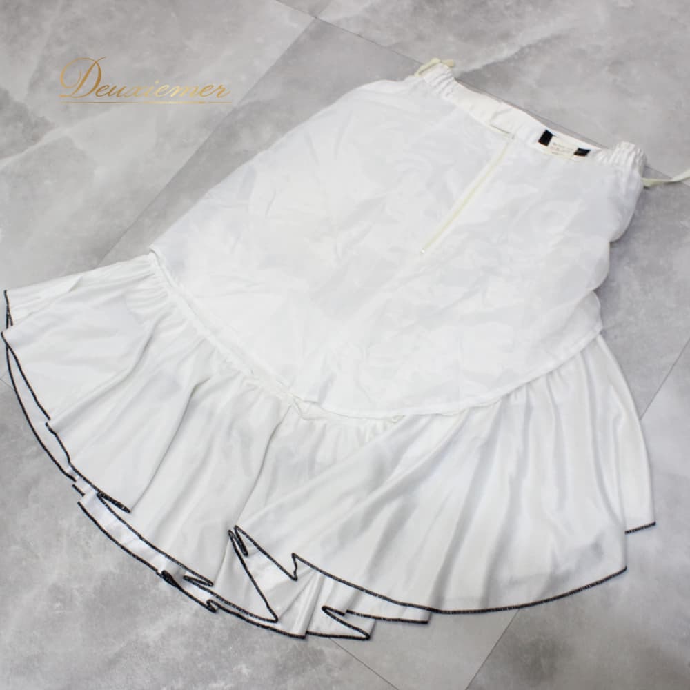 #Sekine #セキネ #ホワイト #ブラック #白黒 #モノトーン #光沢感 #サテン調 #滑らか #ツヤ感 #ファスナー #きれいめ #オフィスカジュアル #通勤 #フォーマル #レディースファッション #ボトムス #スカート #サイズM #ポリエステル #ENUTSU