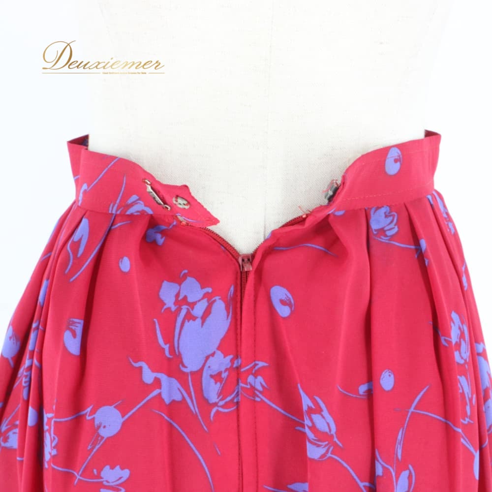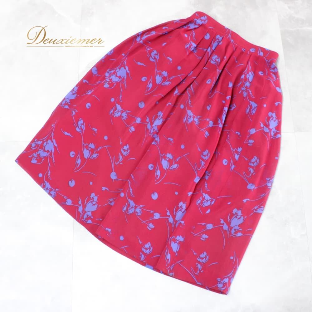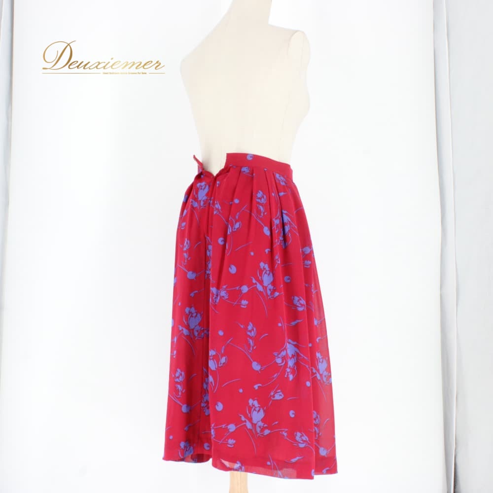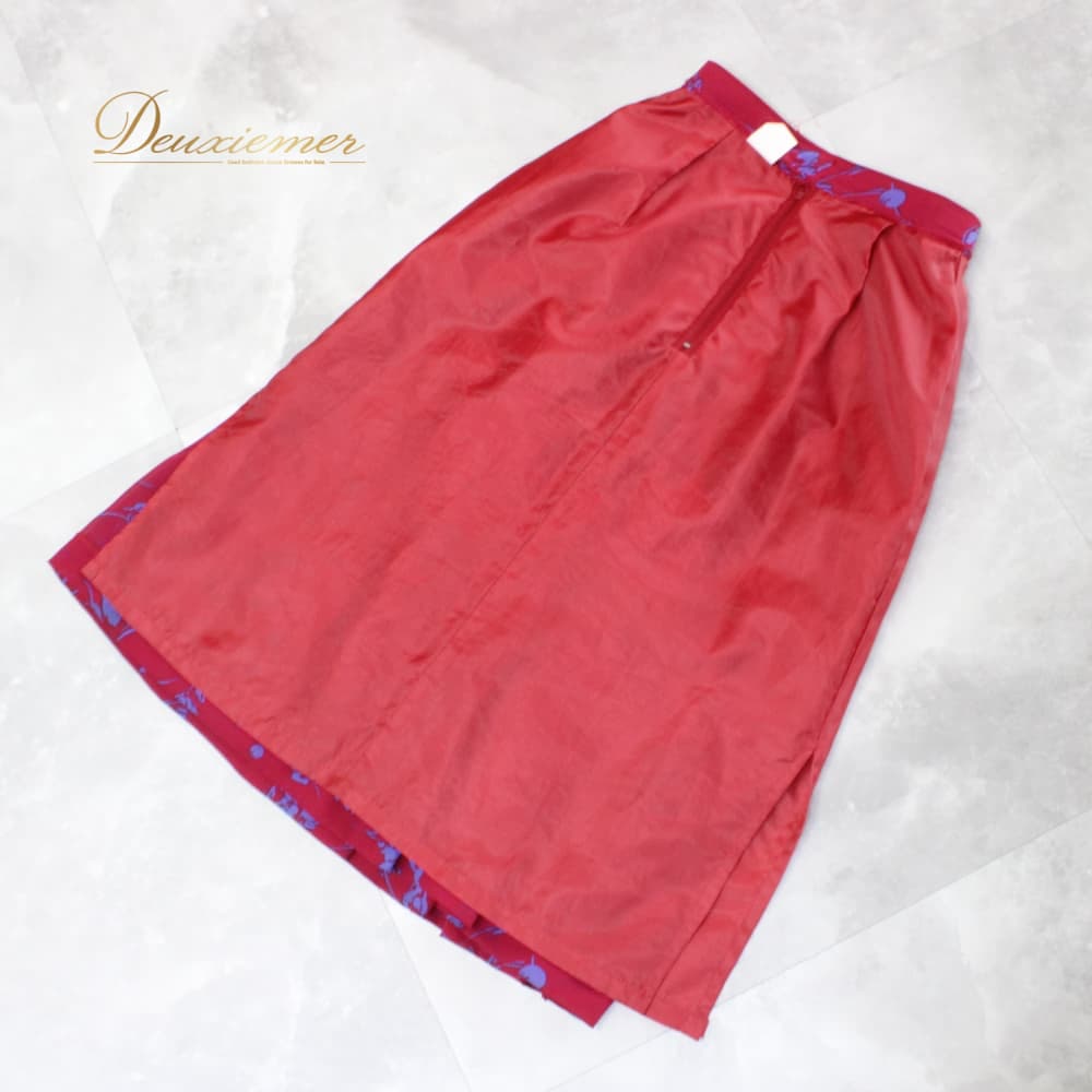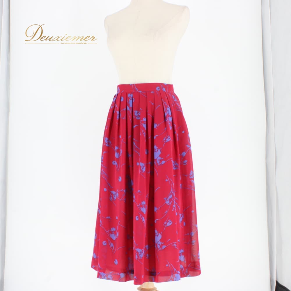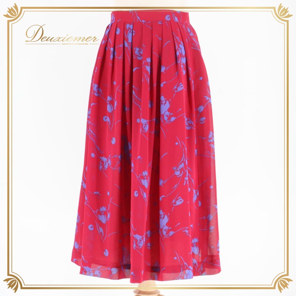 #花柄 #レッド #ブルー #バイカラー #ウエスト #ファスナー付き #フラワープリント #総丈69cm #ポリエステル #伸縮性なし #レトロ #ガーリー #上品コーデ #きれいめ #通勤コーデ #オフィスカジュアル #春コーデ #夏コーデ #ファッション #ENUTSU