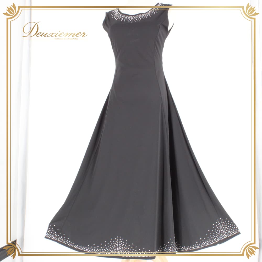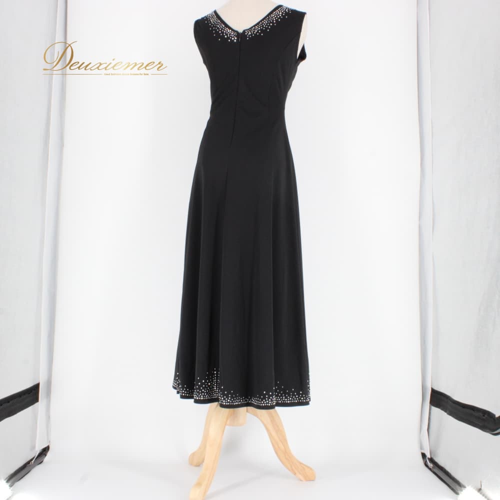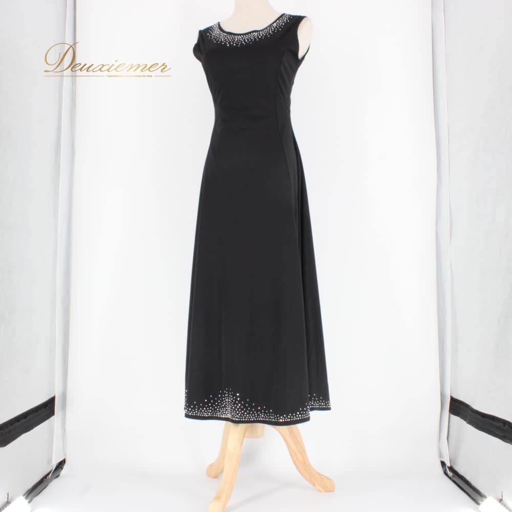 社交ダンス 衣装 スタンダード ドレス ワンピース レッスンウェア パーティドレス ブラック系 ラインストーン 黒 ノースリーブ フォーマル スタンダードドレス ロングワンピース 社交ダンスワンピース ダンスドレス フレアスカート Aライン 輝き ラインストーン装飾 黒ドレス キラキラ ストーン付き フォーマルワンピース ナイトパーティ ワルツ モダン 競技用 レッスン用 練習着 ノースリーブドレス 伸縮性あり ファスナー付き クラシック ブラックドレス レディース 女性用 上品 きれいめ
