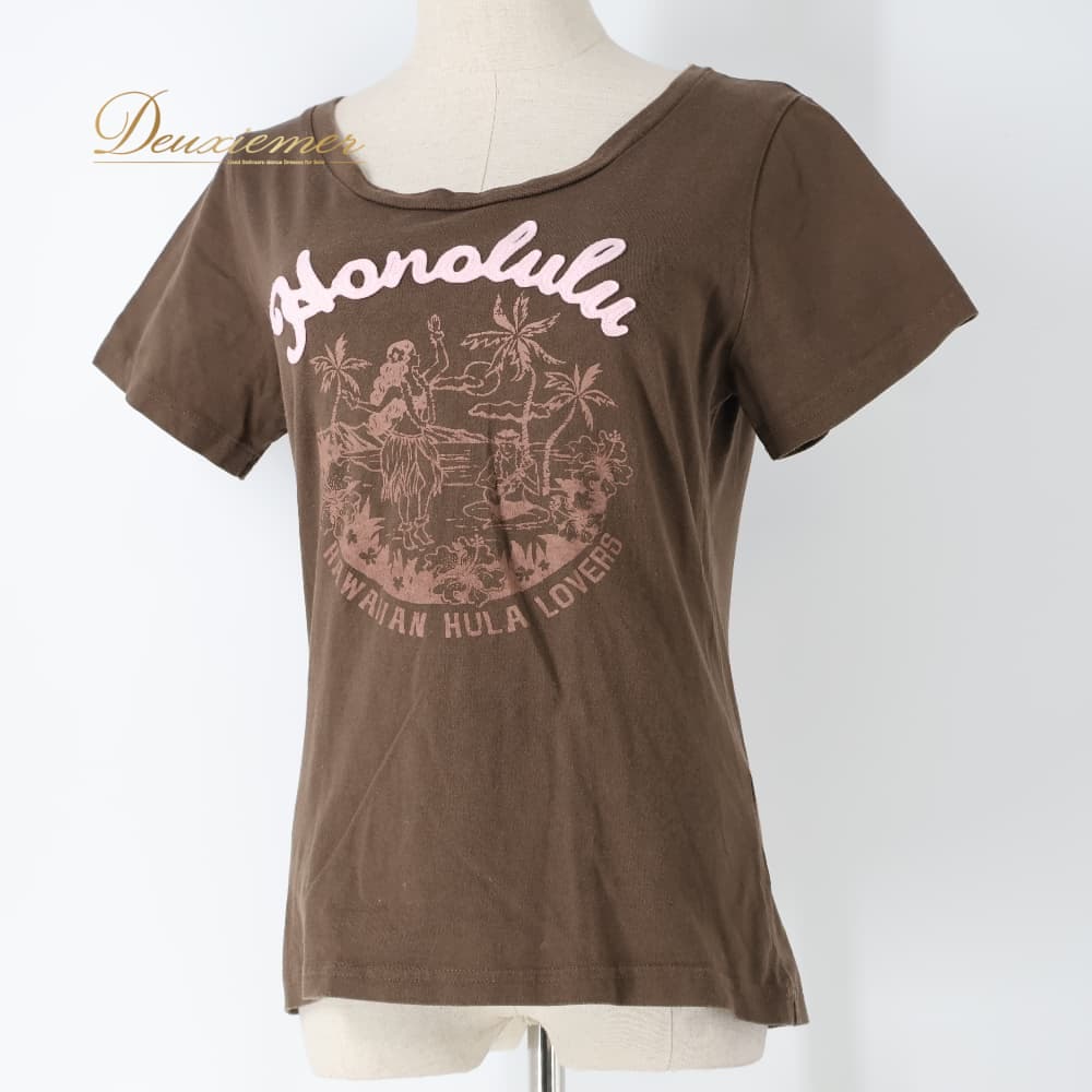 フラダンス 衣装 まとめ売り 全3点 セット トップス Tシャツ アロハスタンダード マウナロア 茶 黄 黒 花柄 ティアレ柄 ハワイアンプリント 練習 レッスン 伸縮 ALOHA STANDARDS Maunaloa ブラック系 ブラウン系 イエロー系