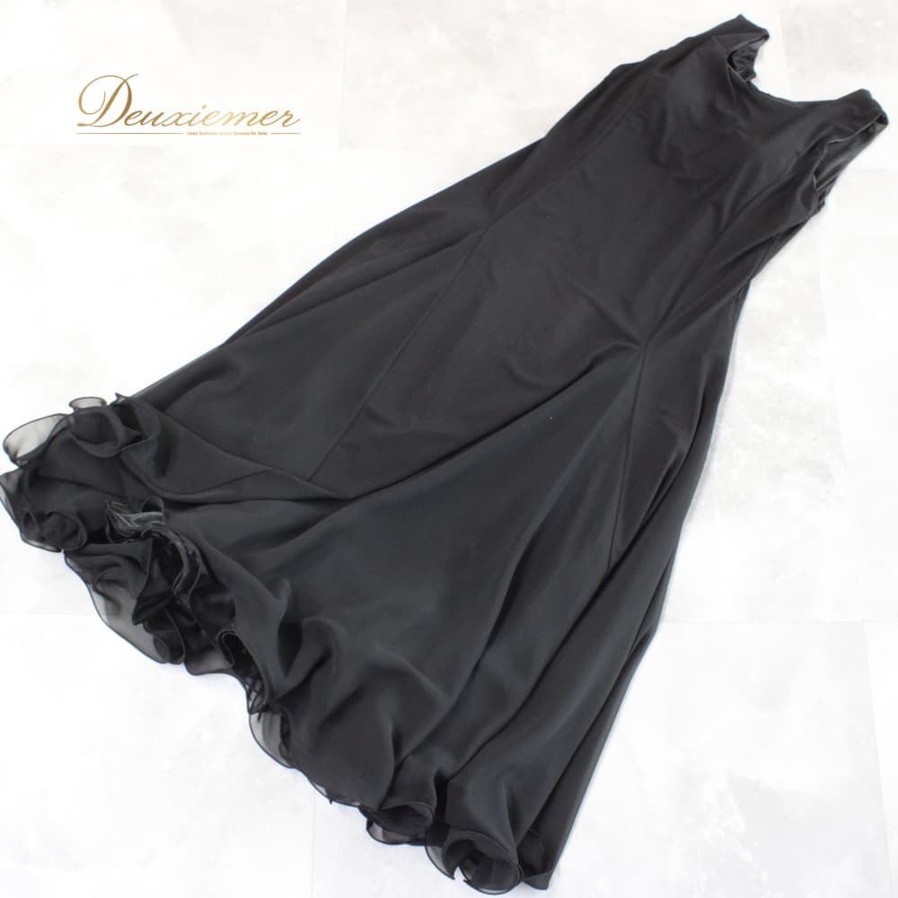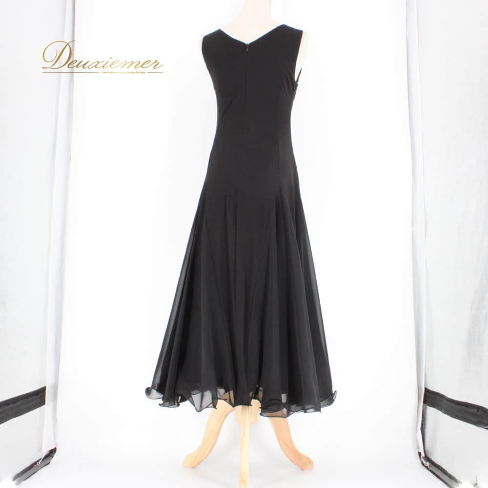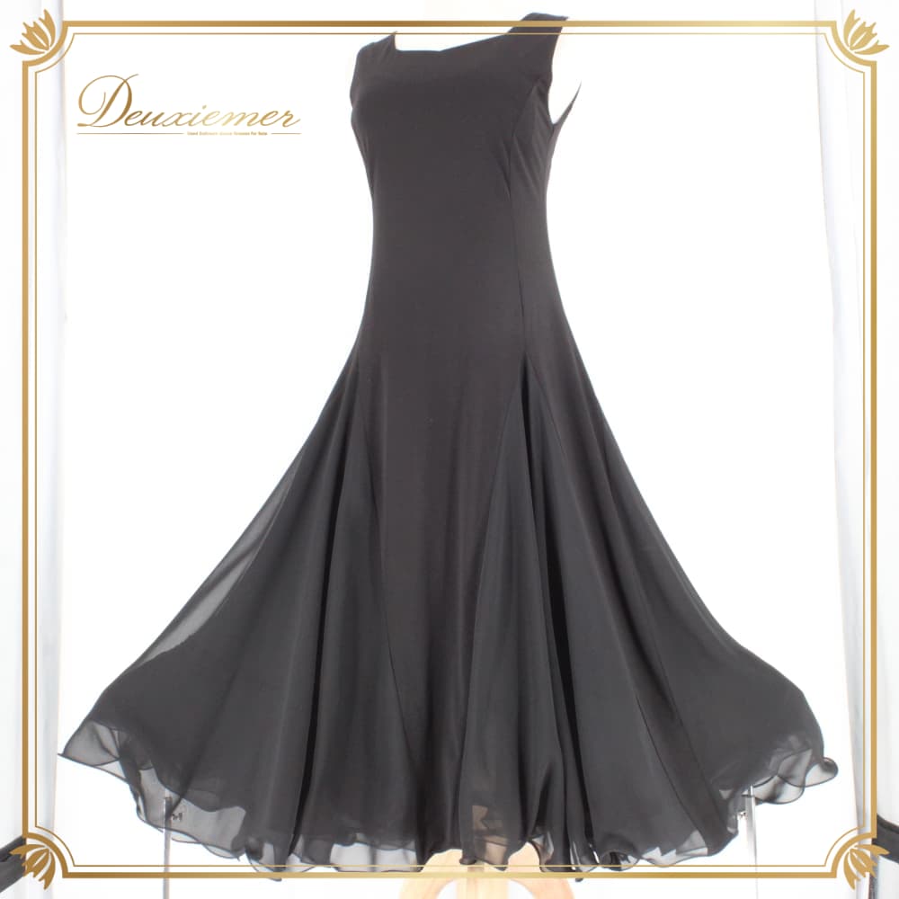 社交ダンス 衣装 スタンダード ドレス ワンピース レッスンウェア パーティドレス 無地 Leirena ブラック系 黒 ノースリーブ レディース ブラック ワンピ フレアスカート 二重スカート モノトーン系 スタンダード用 パーティー ウエスト切替 胸パッド付き 伸縮性 ポリエステル フォーマル ダンス衣装 競技ダンス 上品 高級感 シンプル 風よけインナー 重ねスカート 動きやすい 洗練 デザイン 黒系