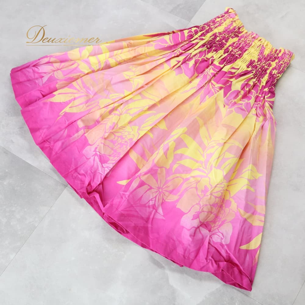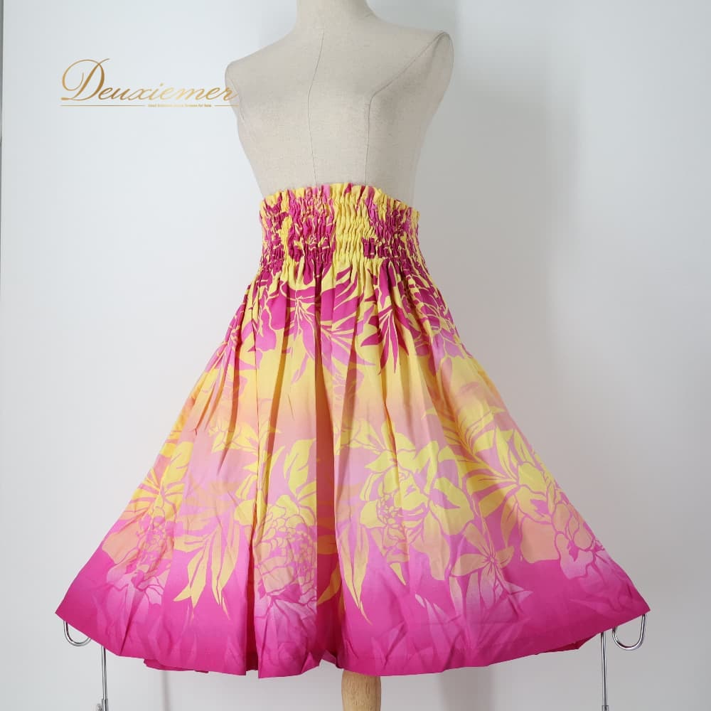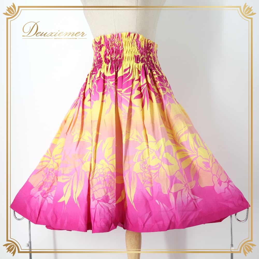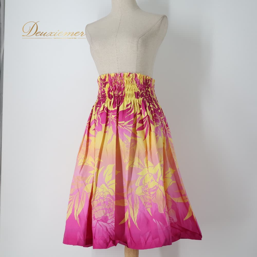 フラダンス 衣装 パウスカート イエロー系 トーチジンジャーTorchGinger ハワイアンプリント アロハ フラ ダンス レッスン 練習 黄 シングル スカート フレア ピンク 紫 ダンス衣装 ハワイアンダンス レディース ピンク系 パープル系 華やか かわいい おしゃれ フラガール ウエストゴム シングルスカート フレアスカート ハワイアン プリント柄 トロピカル柄 植物柄 葉っぱ柄 イエローピンクパープル系 ビビッドカラー 2トーン カラフル華やか 派手め カジュアル アロハ柄 ハワイアンウェア