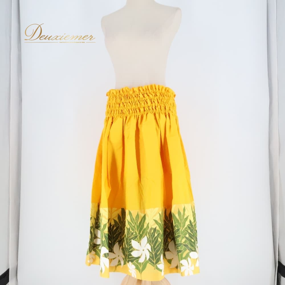 フラダンス 衣装 パウスカート イエロー系 ティアレ柄 ラウアエ柄 シングル シンプル かわいい 華やか 鮮やか 明るい 黄 緑 白 ダンス衣装 ハワイアンダンス ハワイアン アロハ ハワイアンプリント フラ ダンス レッスン 練習 グリーン系 ホワイト系