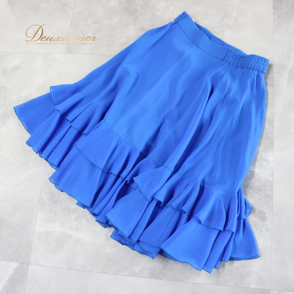 社交ダンス 衣装 スタンダード スカート レッスンウェア レディース Sekine 無地 ブルー系 青 フォーマル 練習着 シンプル 上品 清楚 フラメンコ風ではない ラテンではない ロイヤルブルー フリル ティアード くるみボタン風ではない サテン風ではない 巻きスカート風ではない ドレープ 体型カバー 動きやすい ダンス衣装 レッスン用 練習用 ステージ衣装 フォーマルウェア キレイめ 綺麗め 清楚コーデ 青系 Lサイズ ダンススカート サイドファスナー オープンファスナー 膝下