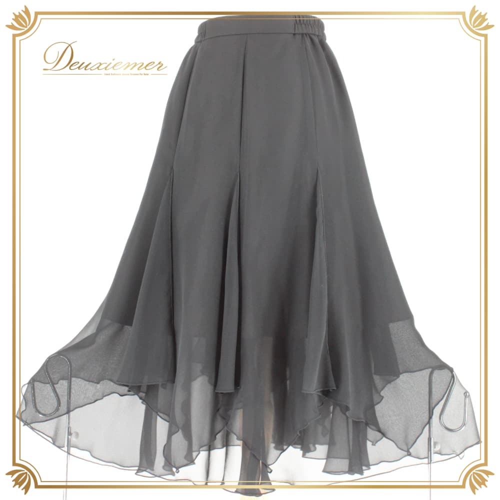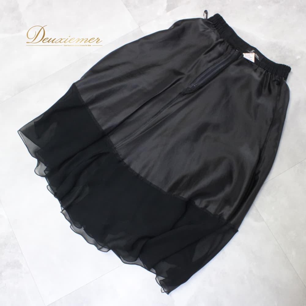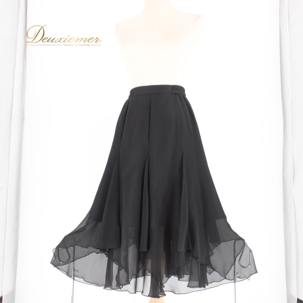 社交ダンス 衣装 スタンダード スカート レッスンウェア レディース Sanline 練習着 ブラック系 フォーマル 無地 シンプル 上品 透け感 スタンダード用 スタンダードドレス 練習用 レッスン用 上品コーデ 大人シンプル アーバンブラック 無地スカート ふんわり フレアスカート シフォン風 ギャザー 伸縮性 体型カバー フォーマルダンス トップス パーティー ワルツ タンゴ ブラツク系 黒系