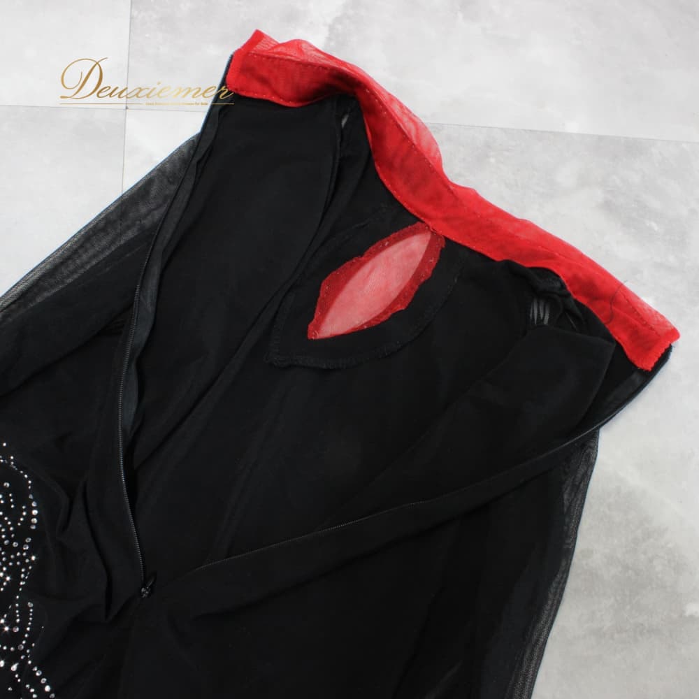 #ラインストーン #ホースヘア #ボリューム #ドレス #パーティードレス #ブラック #レッド #ブラックアンドレッド #ファスナー #伸縮性 #フォーマル #華やか #ダンスコーデ #ステージ衣装 #結婚式二次会 #上品 #大人可愛い #ブラックコーデ #赤アクセント #ENUTSU #ENUTSU