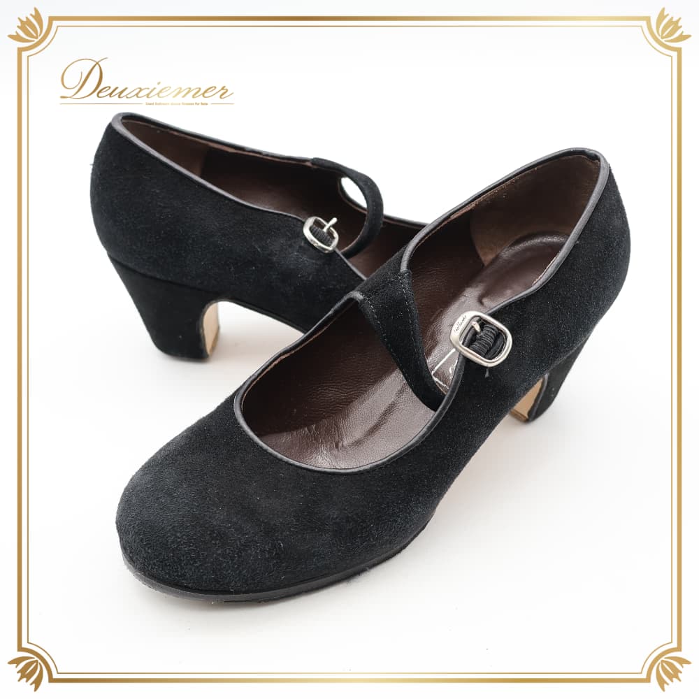 フラメンコ 衣装 シューズ 4 1/2サイズ ブラック系 ガジャルド gallardo 靴 くつ ヒール レディース 釘 くぎ スウェード スエード ストラップ 無地 シンプル 練習 レッスン ダンスシューズ イベント ステージ オールブラック
