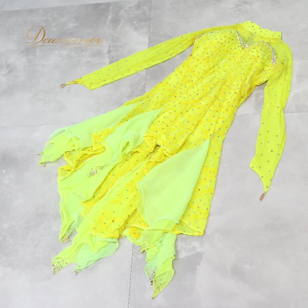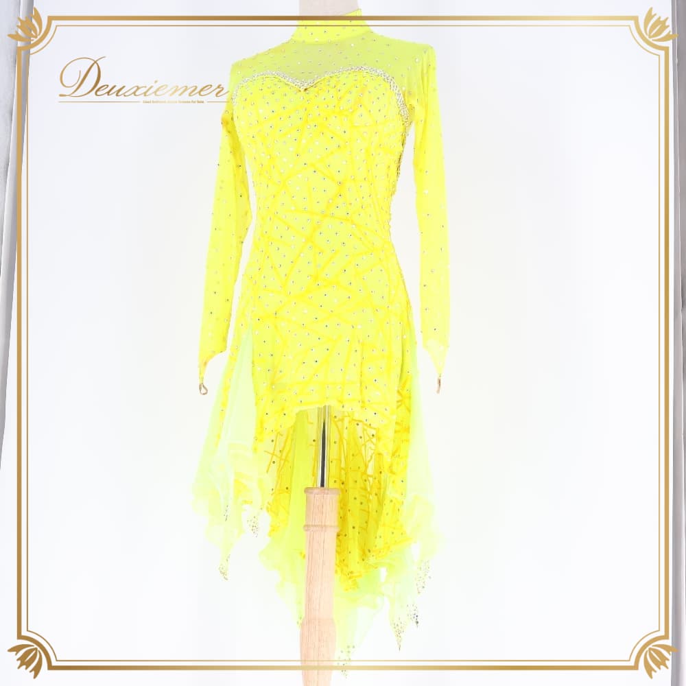 社交ダンス 衣装 ラテン ドレス ワンピース イエロー系 ズデンカアルコ zdenka arko 黄色 レース デモ 競技 ダンス パーティ 発表会 大人可愛い イエロー レースワンピース ラテンワンピース ラテン衣装 社交ダンスドレス デモンストレーション ステージ衣装 発表会ドレス ダンスパーティー衣装