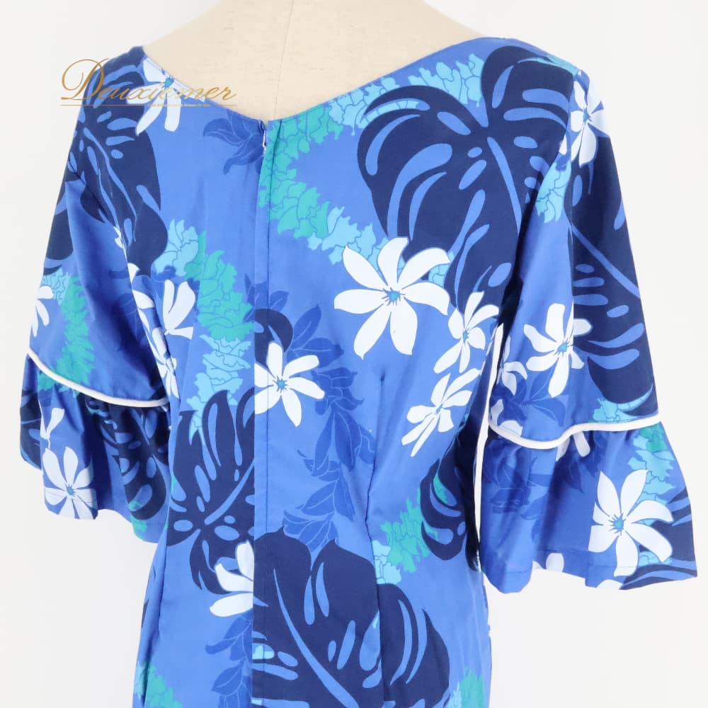 フラダンス 衣装 ワンピース ドレス ブルー系 ティアレ柄 モンステラ柄 レイ柄 ワントーン かわいい 華やか 鮮やか 爽やか 青 紺 白 ダンス衣装 ハワイアンダンス レディース ハワイアン アロハ ハワイアンプリント フラ ダンス レッスン 練習