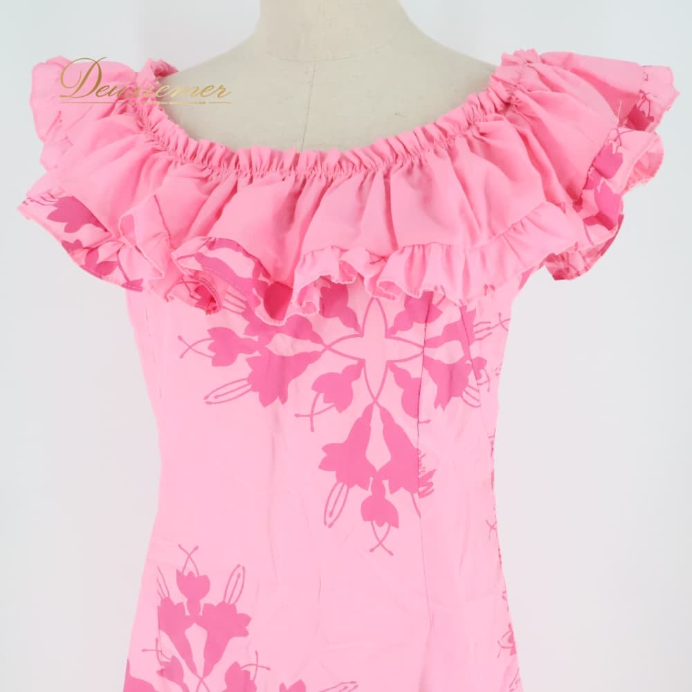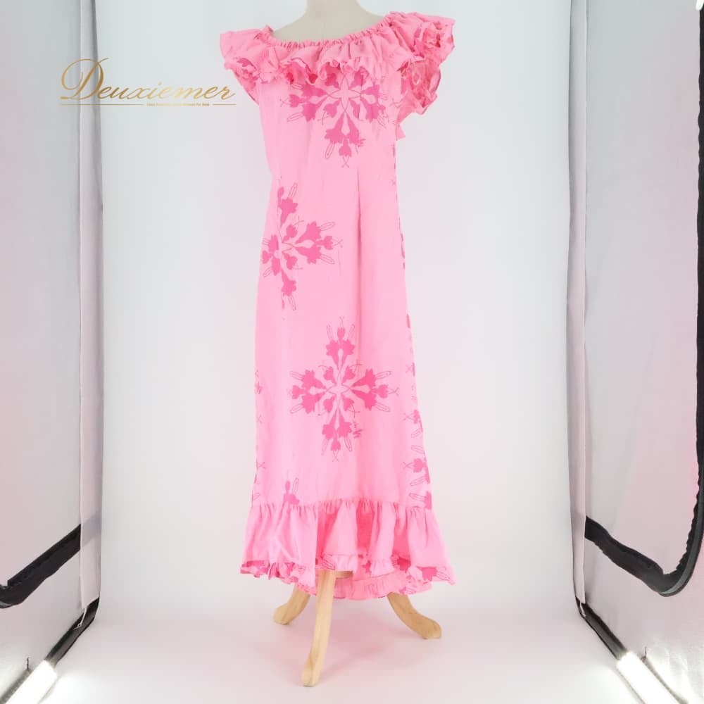 フラダンス 衣装 ワンピース ドレス MAMO HOWELL ピンク系 ハワイ製 ワントーン アシンメトリー フリル かわいい 華やか 鮮やか 明るい ダンス衣装 ハワイアンダンス レディース ハワイアン アロハ ハワイアンプリント ダンス レッスン 練習