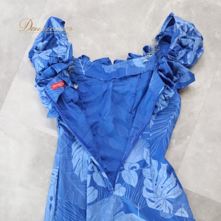 フラダンス 衣装 ワンピース ドレス ブルー系 マーメイドラインエムエムジェイ MermaidLine MMJ 日本製 青 水色 モンステラ柄 ハワイアンプリント アロハ フラ ダンス レッスン 練習 フリル 華やか 鮮やか かわいい おしゃれ 上品 大人っぽい ダンス衣装 ハワイアンダンス レディース フラ衣装 ワンピ マーメイド フレア フリルワンピース 青ドレス 水色ドレス モンステラ柄ワンピース ハワイアン ワンピースドレス アロハプリント 葉柄 ボタニカル柄 南国 フラダンスドレス レッスン着