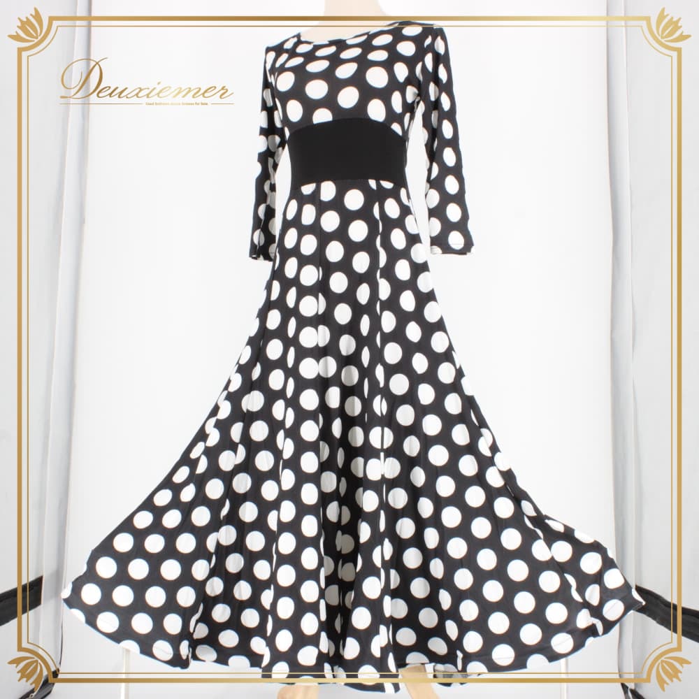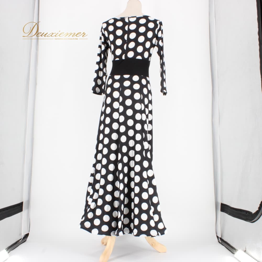 社交ダンス 衣装 スタンダード ドレス ワンピース レッスンウェア パーティドレス Leirena 水玉 ブラック系 ホワイト系 黒 白 ドット 長袖 ホースヘア レディース ドット柄ワンピース スタンダードドレス モダン カジュアル パーティーウェア きれいめ 大人可愛い レトロ ウエストマーク 体型カバー 可愛い 伸縮素材 ストレッチ素材 ポリエステル ポリウレタン 黒白 デザインワンピース 舞台衣装 ホースヘア風レトロスタイル