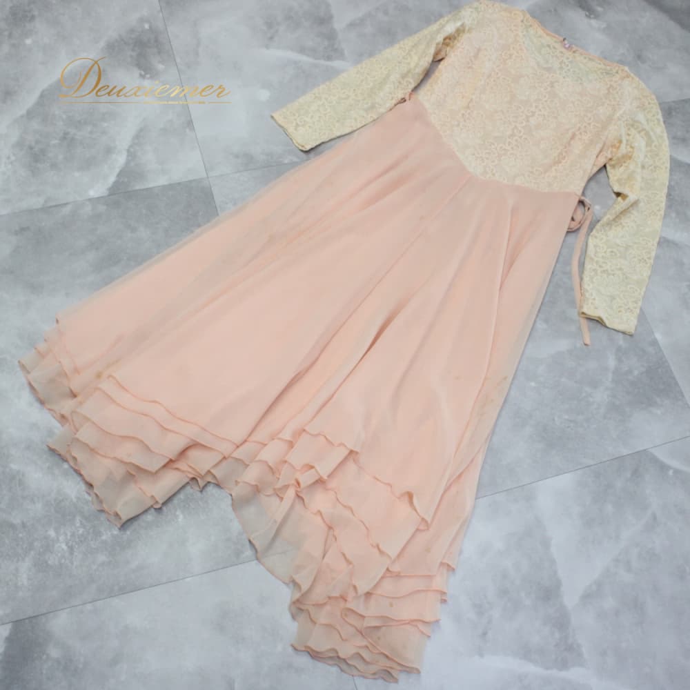 社交ダンス 衣装 スタンダード ドレス ワンピース レッスンウェア パーティドレス レディース ベージュ系 オレンジ系 レース 長袖 シンプル 社交ダンスドレス スタンダード用ワンピース ミディアム丈 ドレスワンピ 上品 レース生地 花柄レース 刺繍風 レトロ 大人可愛い フォーマル 華やか ワンピースドレス フレアスカート プリーツ風 配色切替 ファスナー付き 伸縮あり くすみカラー くすみオレンジ ベージュオレンジ系 ダンス発表会 演奏会 クラシカル エレガント ウエストライン 裏地あり 透け感控えめ