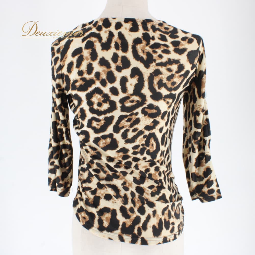 社交ダンス 衣装 スタンダード トップス レッスンウェア レディース Leirena 練習着 黒 ブラック系 ベージュ系 ブラウン系 茶色 長袖 ヒョウ柄 ゼブラ柄 アニマル柄 長袖トップス スタンダード用 練習用 ウエア レッスン着 社交ダンスレッスン 婦人服 女性用 ダンス衣装 ブラウス風 フォーマル 伸縮性あり ポリエステル混 ポリウレタン混 モダン ダンスウェア ルームウェア風 カジュアルシック ヒョウ柄トップス 黒ベージュ 茶系コーデ