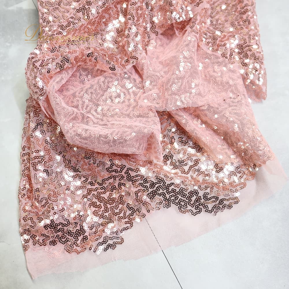 スパンコールが付いた布は切りっぱなしのデザインです。