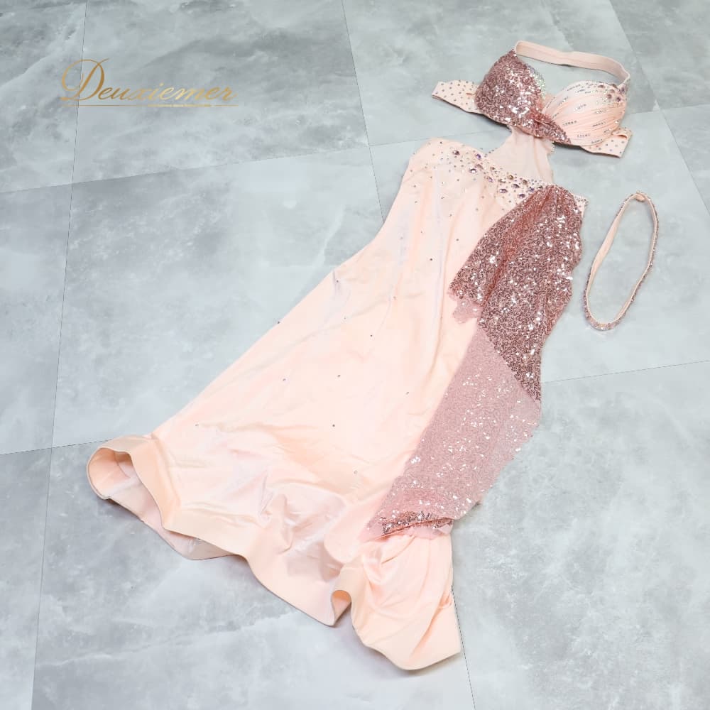 ベリーダンス オリエンタル 衣装 ワンピース ドレス ピンク系 ポリーナ POLINA ラインストーン 一体型 伸縮 ストレッチ かわいい 淡い 華やか キラキラ ダンス衣装 イベント ステージ おしゃれ ステージ映え