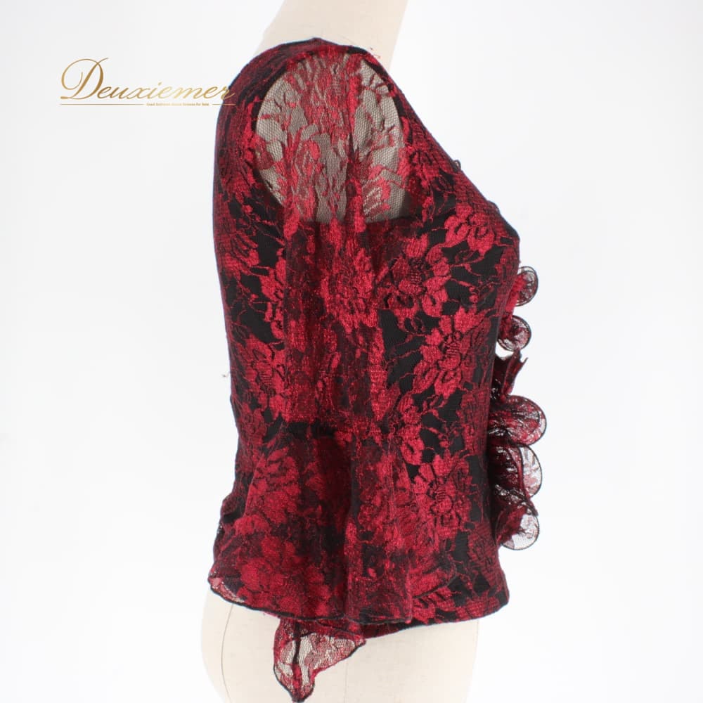 社交ダンス 衣装 スタンダード トップス レッスンウェア レディース ICHIOKU 赤 黒 ブラック系 レッド系 レース 練習着 花柄 派手 練習 レッスン フラワー柄 競技 レース生地 柄物 ブラック レッド フレア袖 ベルスリーブ セクシー カジュアル フィット 伸縮 練習用 フリル アシンメトリー風 柄入り 透け感風 ナイロン系 ダンスウェア 赤黒 花柄レース