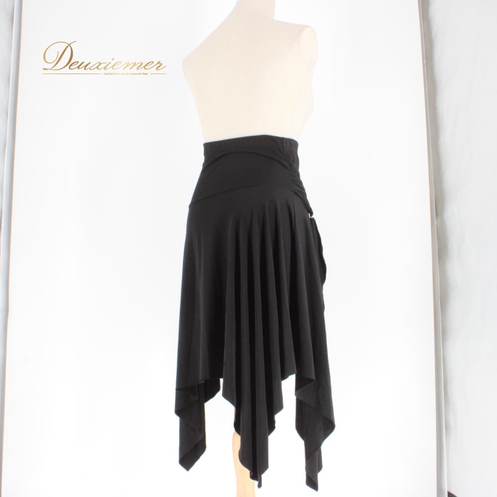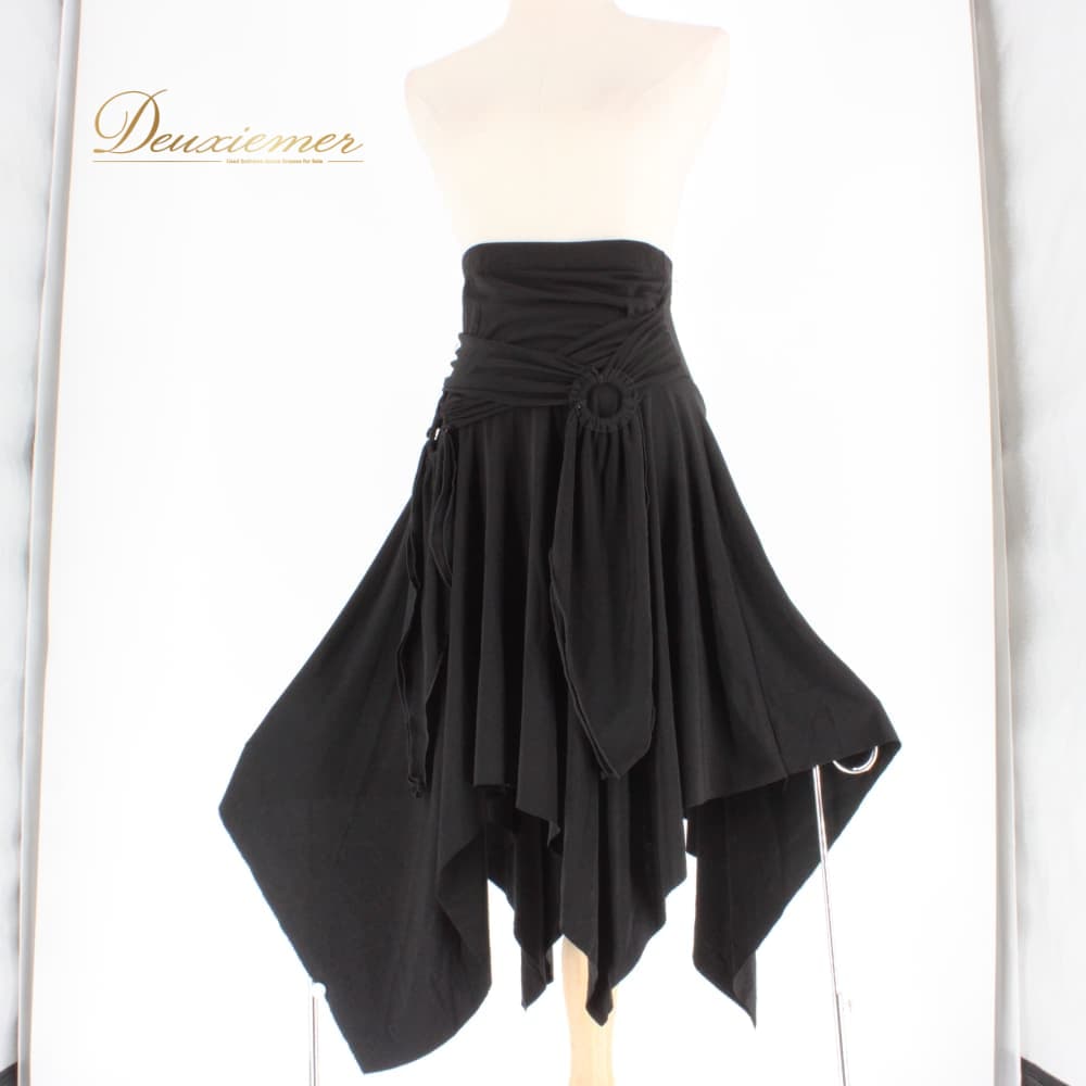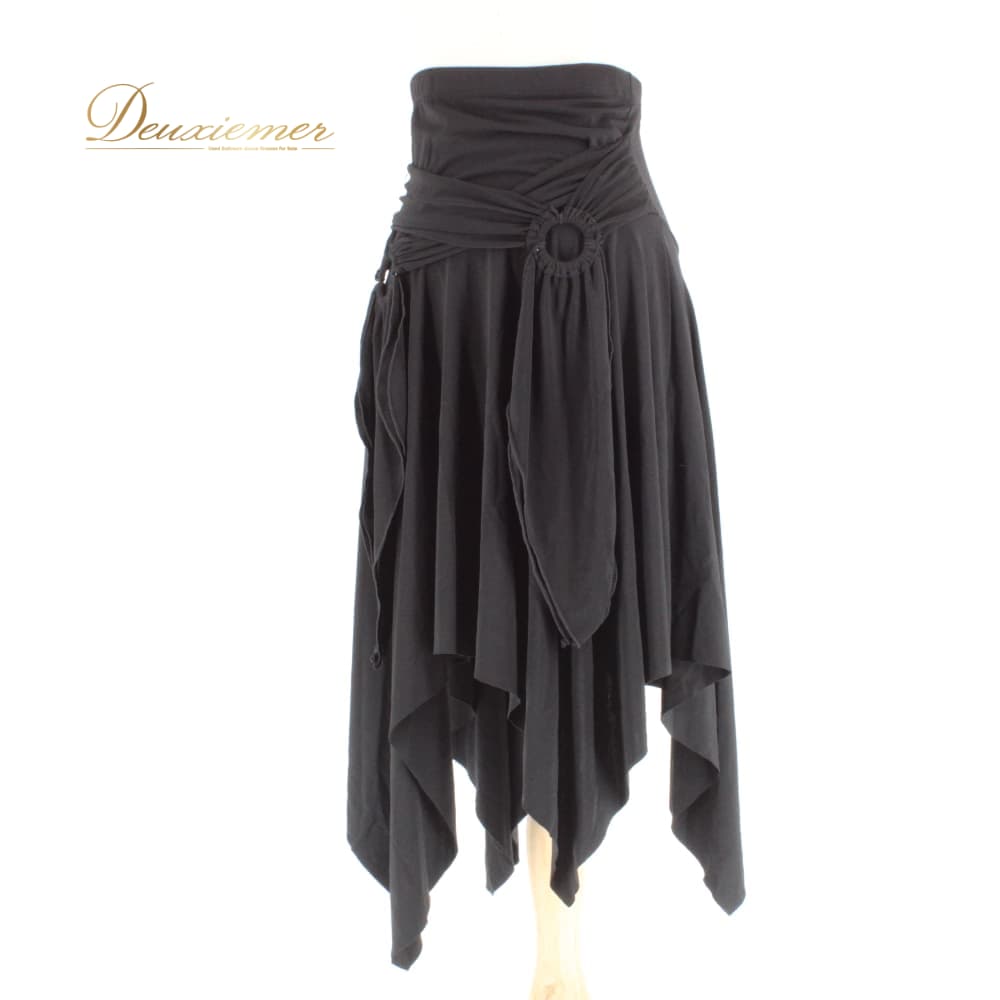 社交ダンス 衣装 スタンダード スカート レッスンウェア レディース 無地 シンプル ブラック系 練習着 黒 フォーマル 上品 気品 かわいい レッスン スタンダードダンス スカート単品 フレアスカート フリル リボン風デザイン ラップ風 カシュクール風 モノトーン ブラック フォーマルウェア 練習用 ダンス衣装 きれいめ シンプルデザイン 大人可愛い エレガント 華やか ストレッチ素材 ポリエステル 通気性 体型カバー フリル部分 裾長め 動きやすい シルエット 綺麗 裾 77.5cm 黒スカート