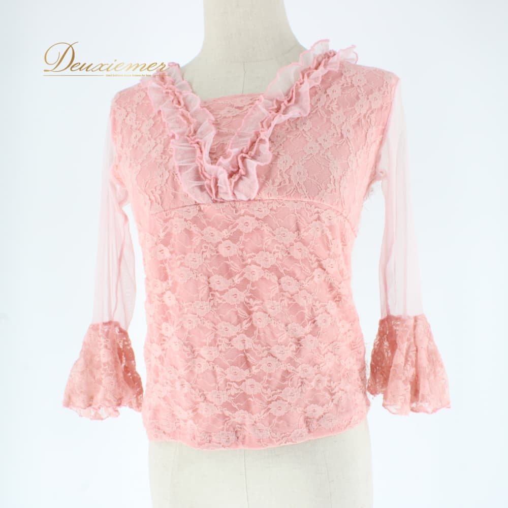 社交ダンス 衣装 スタンダード トップス レッスンウェア レディース ICHIOKU レース ピンク系 練習着 シンプル フェミニン かわいい ピンク カットソー ブラウス 透け感 フリル デザイン 袖なし風 長袖 フレア袖 フォーマル 練習用 レッスン用 ワルツ ダンス 体型カバー 上品 大人可愛い エレガント 華やか 柔らか素材 ポリエステル 生地 ボタン無し パーティー衣装 演奏会 お稽古 インナー不要 コーデしやすい フィット感 伸縮性あり