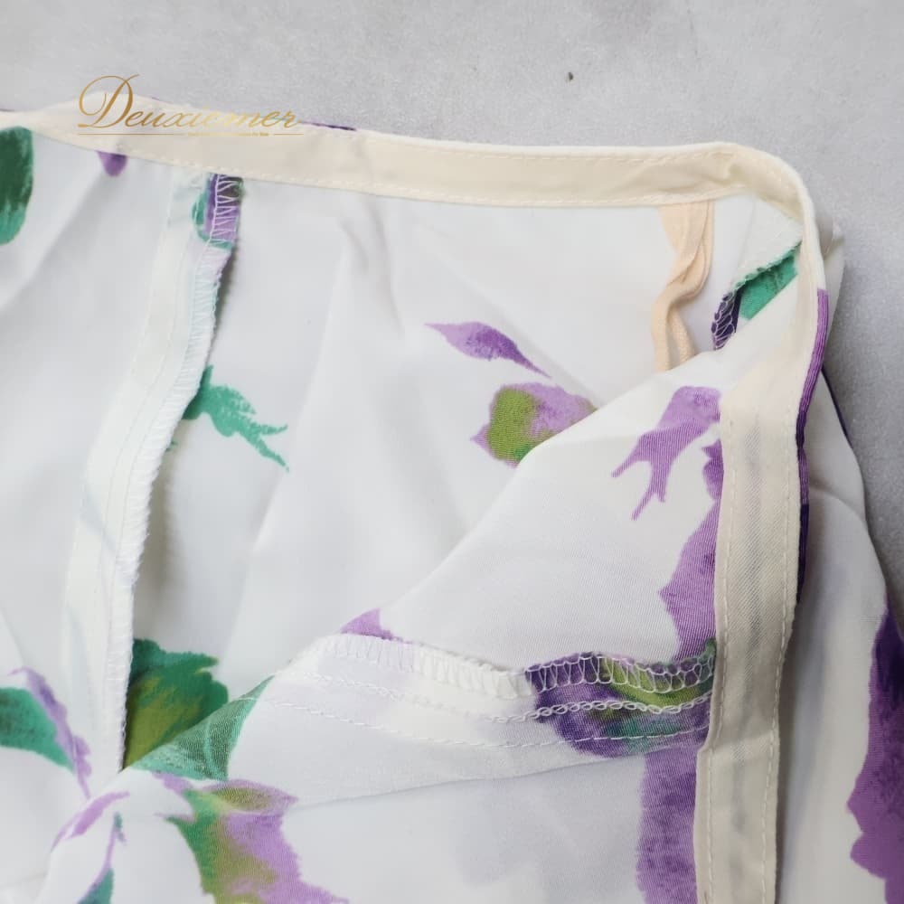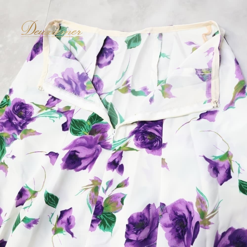 #ペチコート #フリル #花柄 #ガーリー #フェミニン #ホワイト #パープル #レディースファッション #レイヤードコーデ #スカートスタイル #ドレスコーデ #クラシカル #上品コーデ #背面ファスナー #春コーデ #夏コーデ #軽やか #透け対策 #ウエスト調整 #ENUTSU