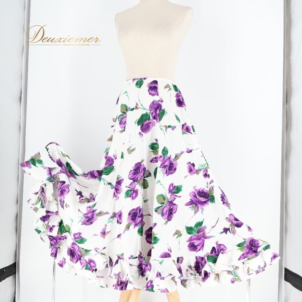 フラメンコ 衣装 ファルダ スカート ペチコート ホワイト系 パープル系 白 紫 花柄 軽い 薄い かわいい フリル ボランテ 軽量 薄手 フェミニン ダンス衣装 舞台衣装 発表会 練習用