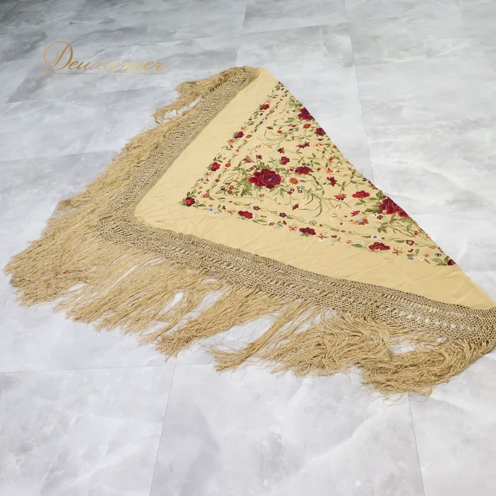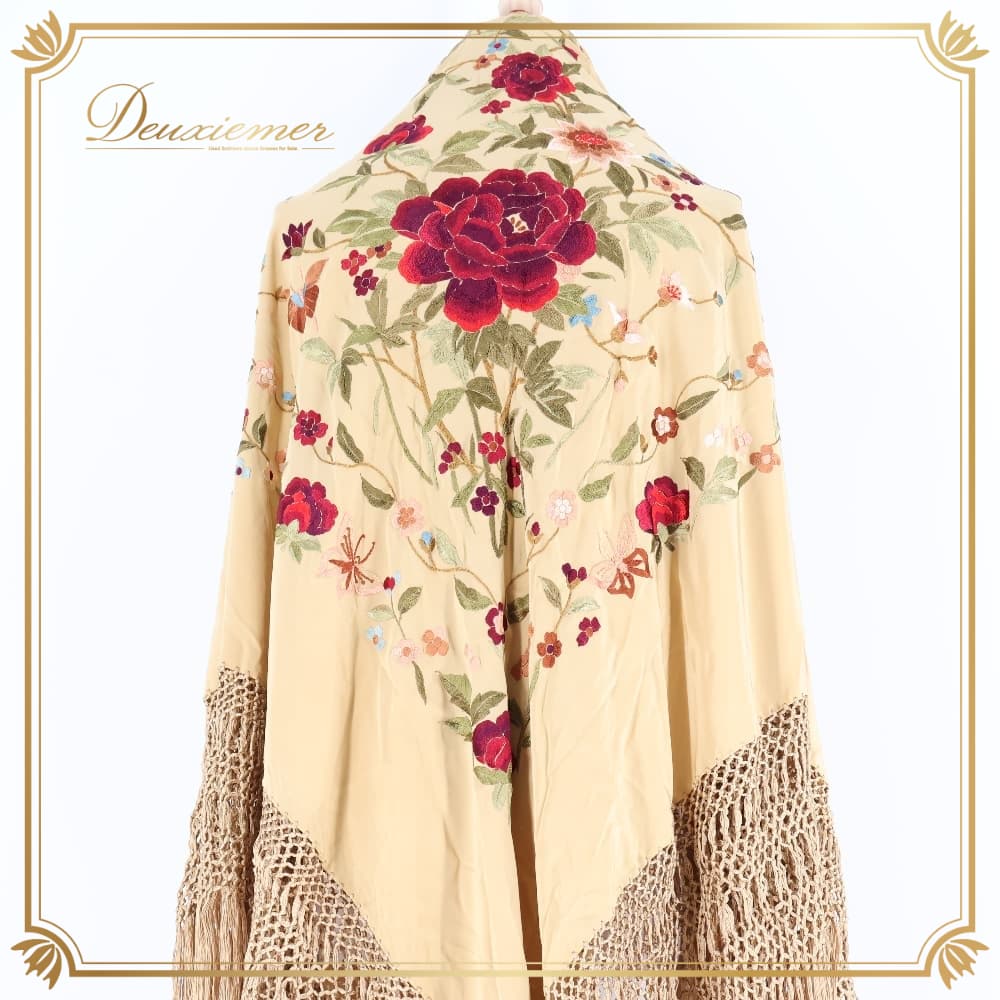 フラメンコ 衣装 マントン シージョ ベージュ系 ブラウン系 レッド系 グリーン系 茶色 ベージュ 花柄 刺繍 フレコ フリンジ 大判 ダンス パーティ 発表会 練習 お洒落 高級感 フラメンコ用品 花刺繍 フラワー柄 大判ストール 舞台衣装 発表会衣装 華やか おしゃれ エレガント レトロ