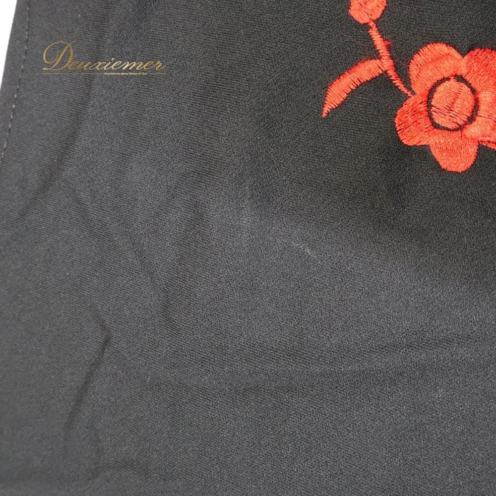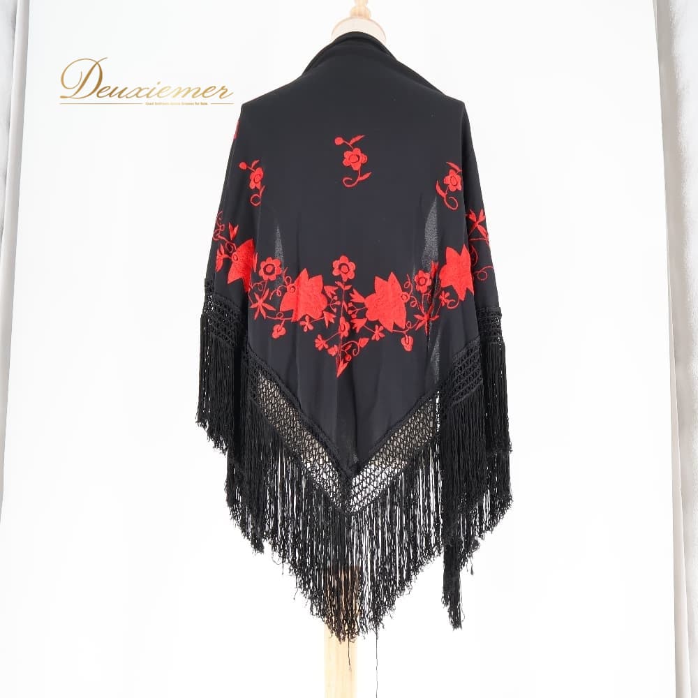 #三角シージョ #ストール #ショール #フリンジ #フリンジ付き #ブラックレッド #刺繍 #黒赤刺繍 #シージョ #レディースファッション #羽織り #フォーマル #パーティー #結婚式 #二次会 #和装小物 #ドレスコーデ #秋冬コーデ #伸縮性あり #ENUTSU