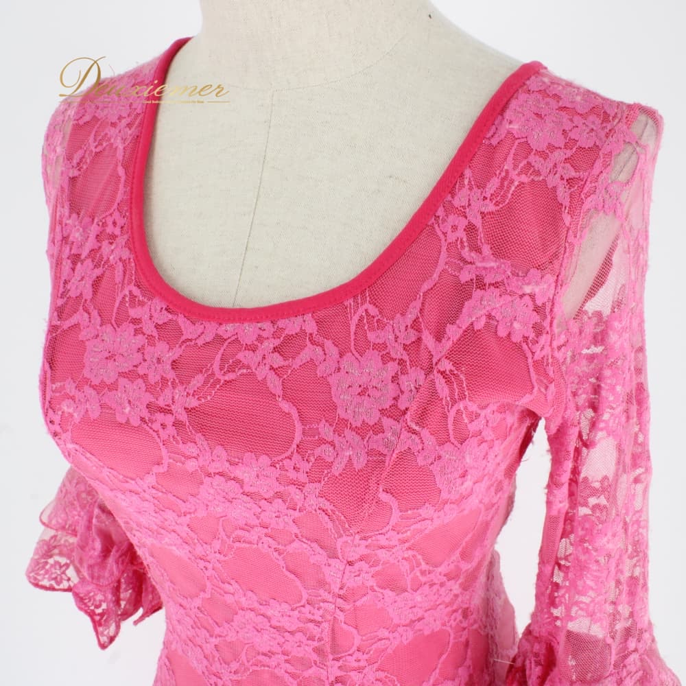 社交ダンス 衣装 ラテン ドレス ワンピース パーティドレス ICHIOKU ピンク系 レース フリル アシンメトリー アシメ 花柄 華やか ラテン衣装 フレアワンピース フリル袖 七分袖 チュールレース 花柄レース 総レース ピンクドレス エレガント きれいめ 大人可愛い アシメデザイン ドレープ 裾フレア ダンス パーティー 発表会 コスチューム 上品 伸縮性あり ポリエステル ピンク フリルデザイン モダン ショー衣装 9号相当 レディース